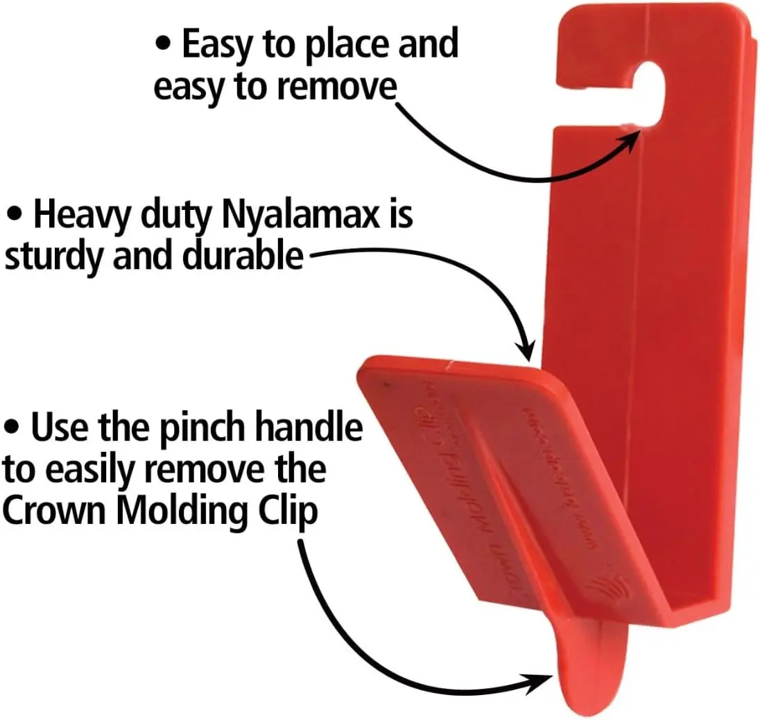 ·Durable Construction - Made from sturdy nylon, the Crown Molding Clip provides a reliable solution that can withstand the rigors of continuous use and tough installation jobs.