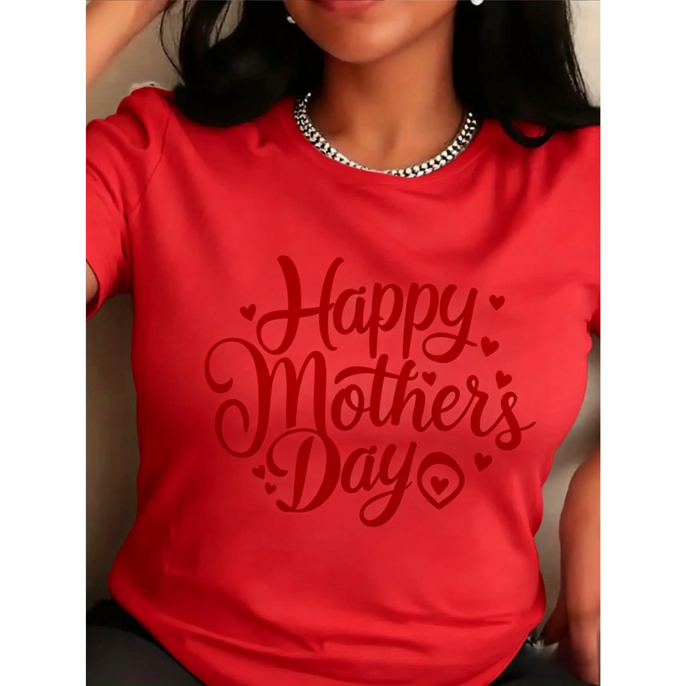 100% cotton, Mother's Day women's T-shirt - red heart design, comfortable for everyday wear, a gift for mom, an ideal present for Mother's Day