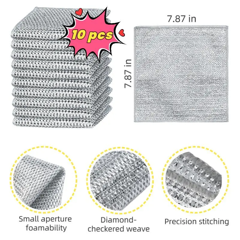 Elevate your cleaning game with our Advanced Stainless Steel Cloth. This set of 20PCS is perfect for pots, pans, sinks, kitchens, and bathrooms. It's a heavy-duty scratch pad that ensures efficient cleaning. The silver color adds a sleek touch to your cleaning routine. 🌟