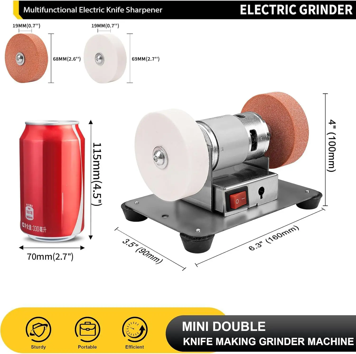 100w Mini Bench Grinder, Electric Benchtop Sander, Electric Multi-Purpose Grinding Machine, Polishing Grinding Machine Small Grinder for Woodworking Knife Making(6.3 * 3.9 * 3.9in)