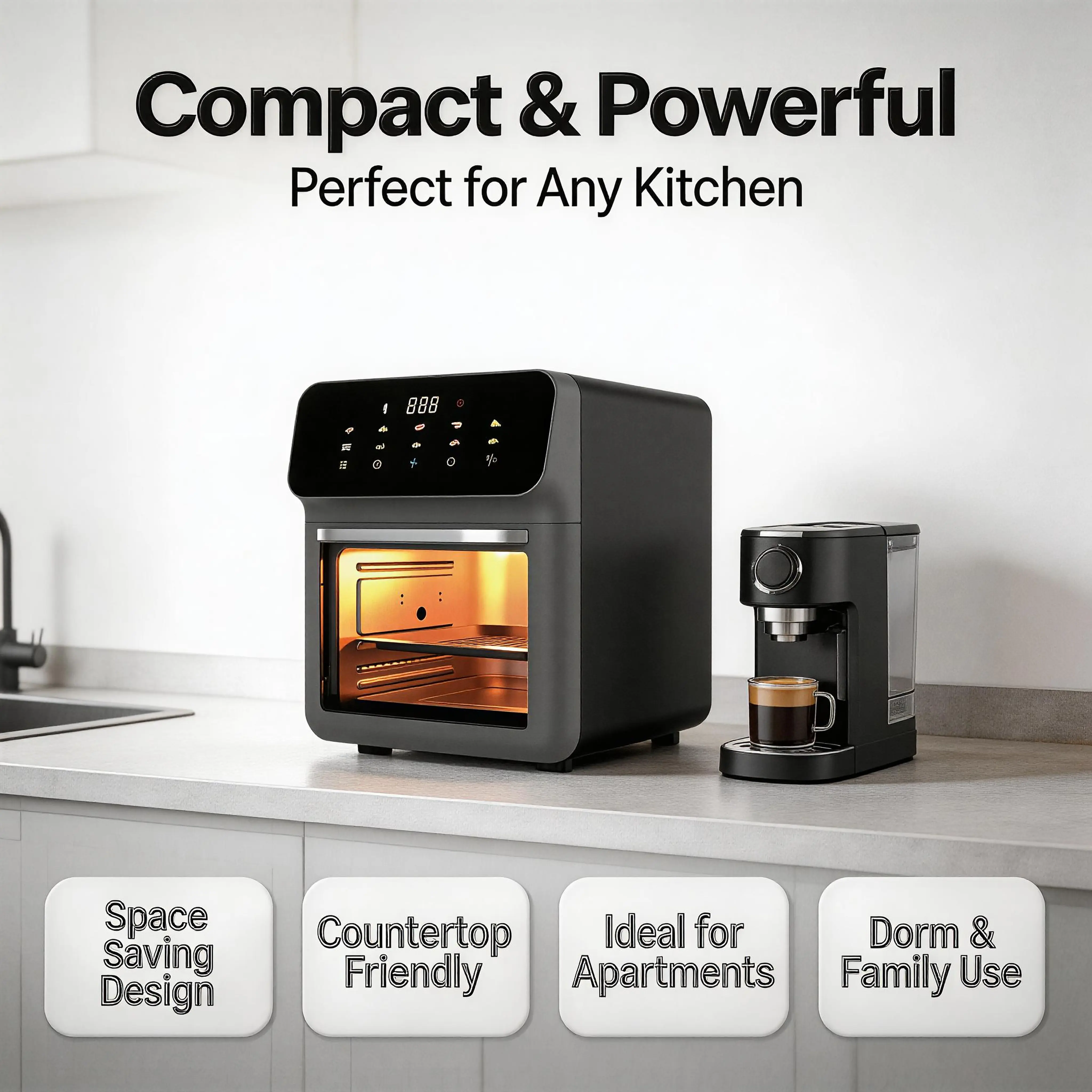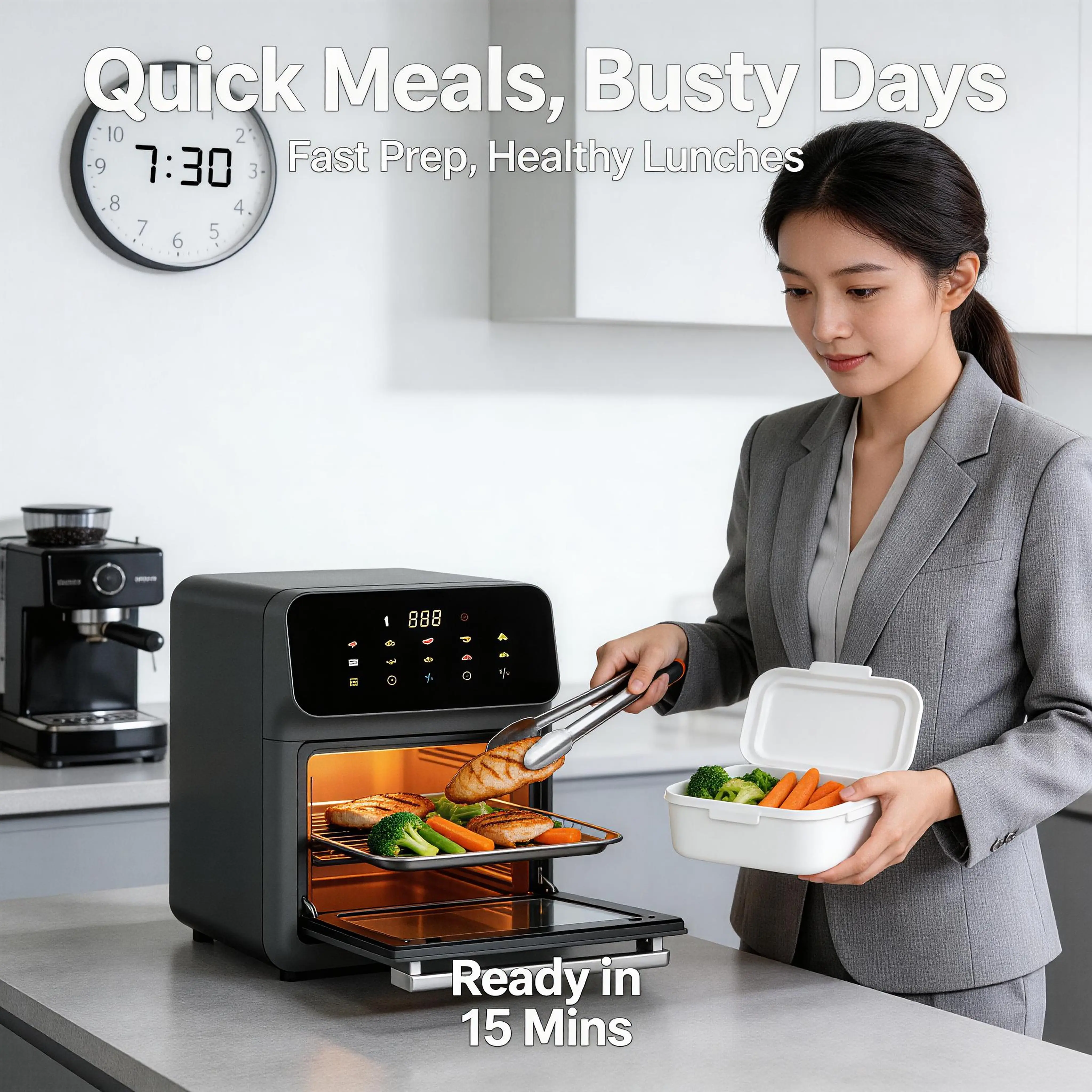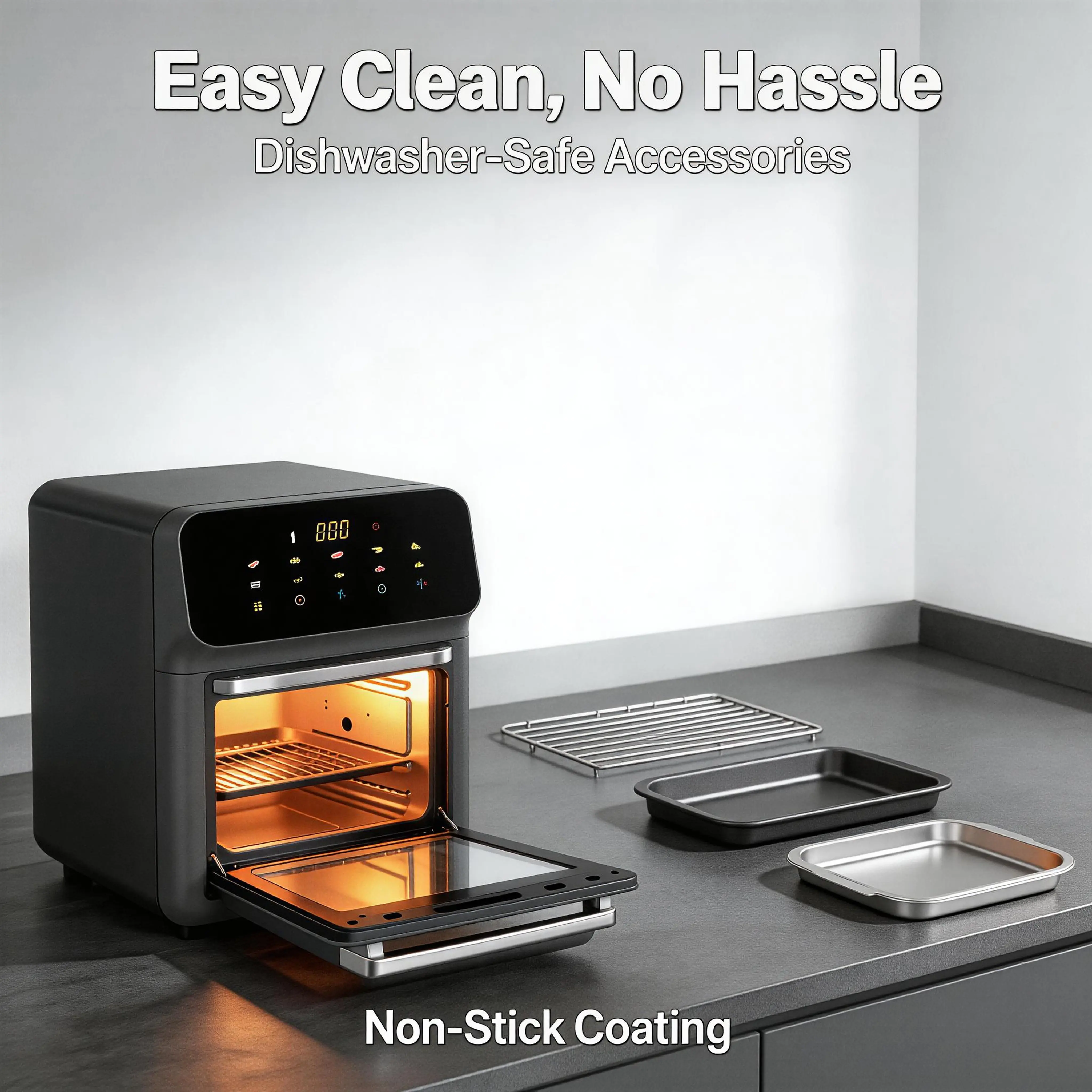 Designed for busy office workers and stay-at-home moms, this air fryer cuts down cooking time significantly. It preheats in minutes, cooks meals faster than a traditional oven, and requires minimal supervision. Spend less time slaving over the stove and more time with your family, working, or enjoying your favorite hobbies—this air fryer does the hard work for you.