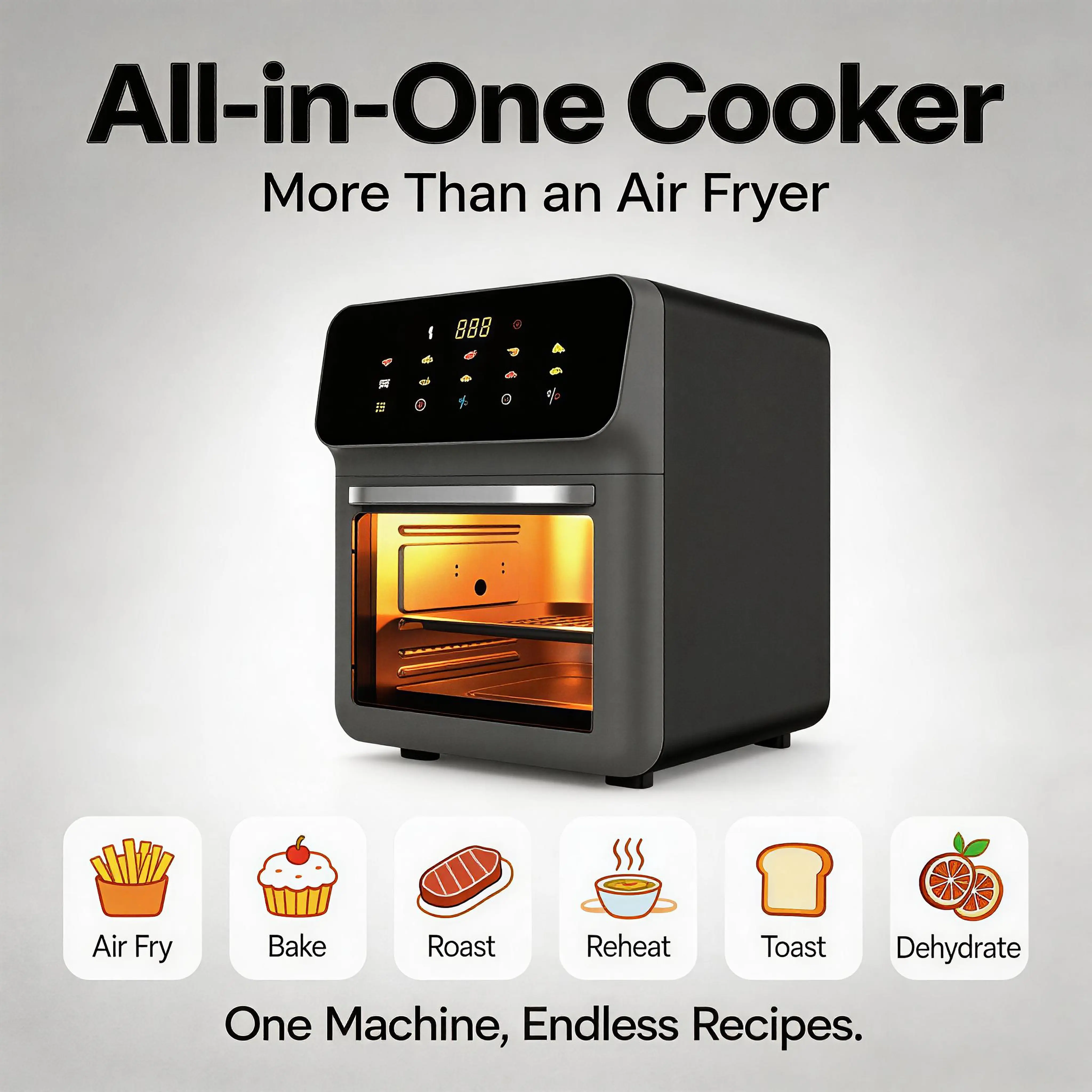 ·All-in-one cooking solution: Fry, bake, roast, grill, and reheat in one appliance