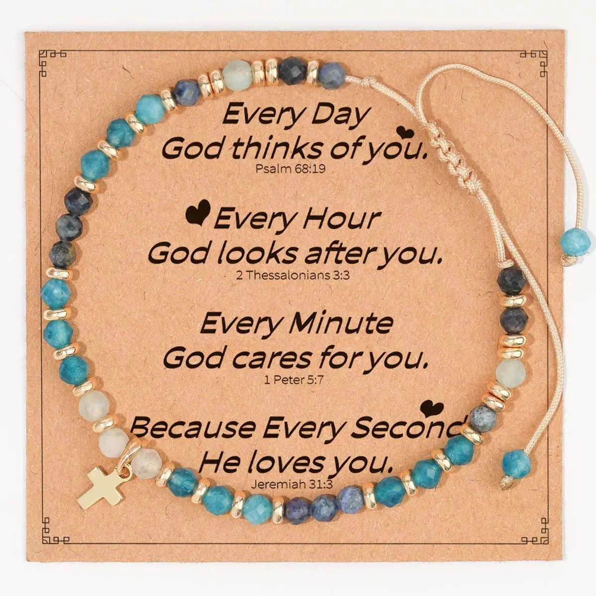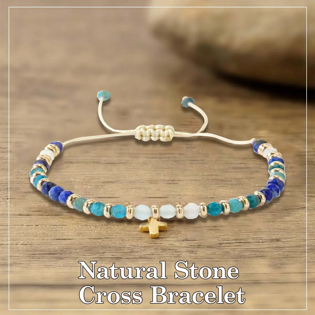 Embrace faith and nature with this stunning cross bracelet.Featuring a delicate gold-toned cross charm and a mix of earthy-hued natural stone beads (like jasper, turquoise, and rose quartz), this bracelet blends spiritual symbolism with boho-chic style.The adjustable rope design ensures a perfect fit for any wrist, making it ideal for daily wear, prayer, or as a heartfelt gift for the special women in your life.