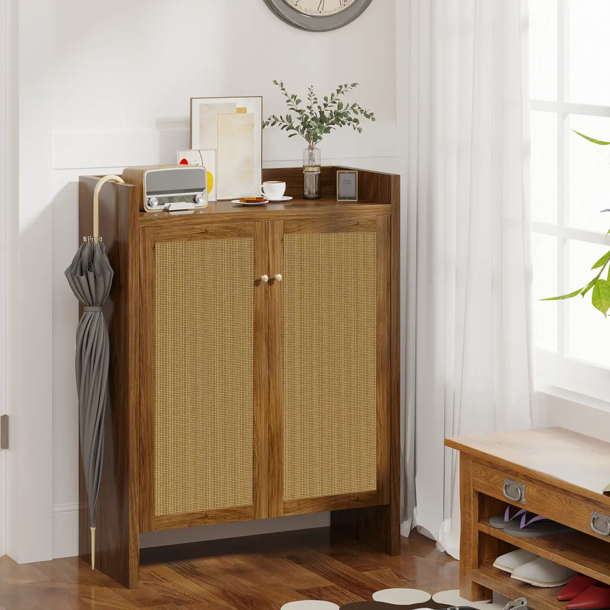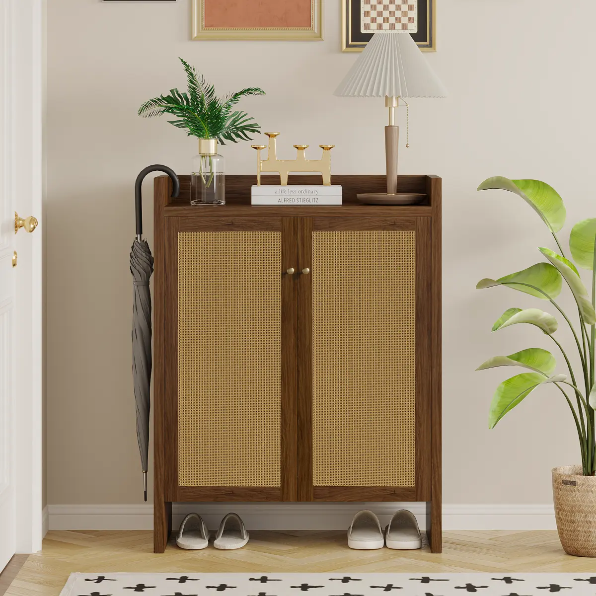 ·【Everlasting Design】This shoe cabinet achieves a perfect blend of classic rectangular rattan doors, exuding rustic charm and bohemian vibes, making it a versatile addition to any home decor.