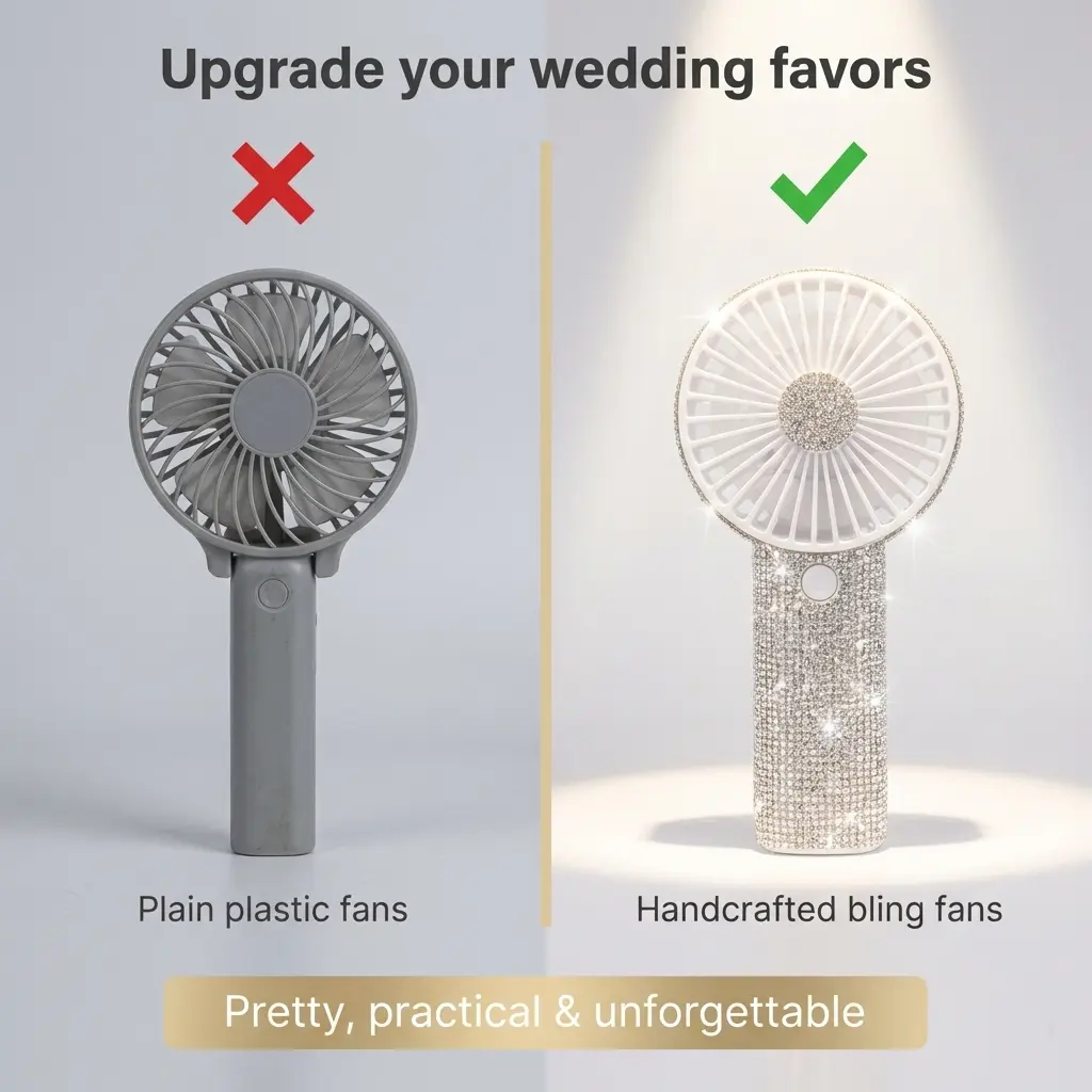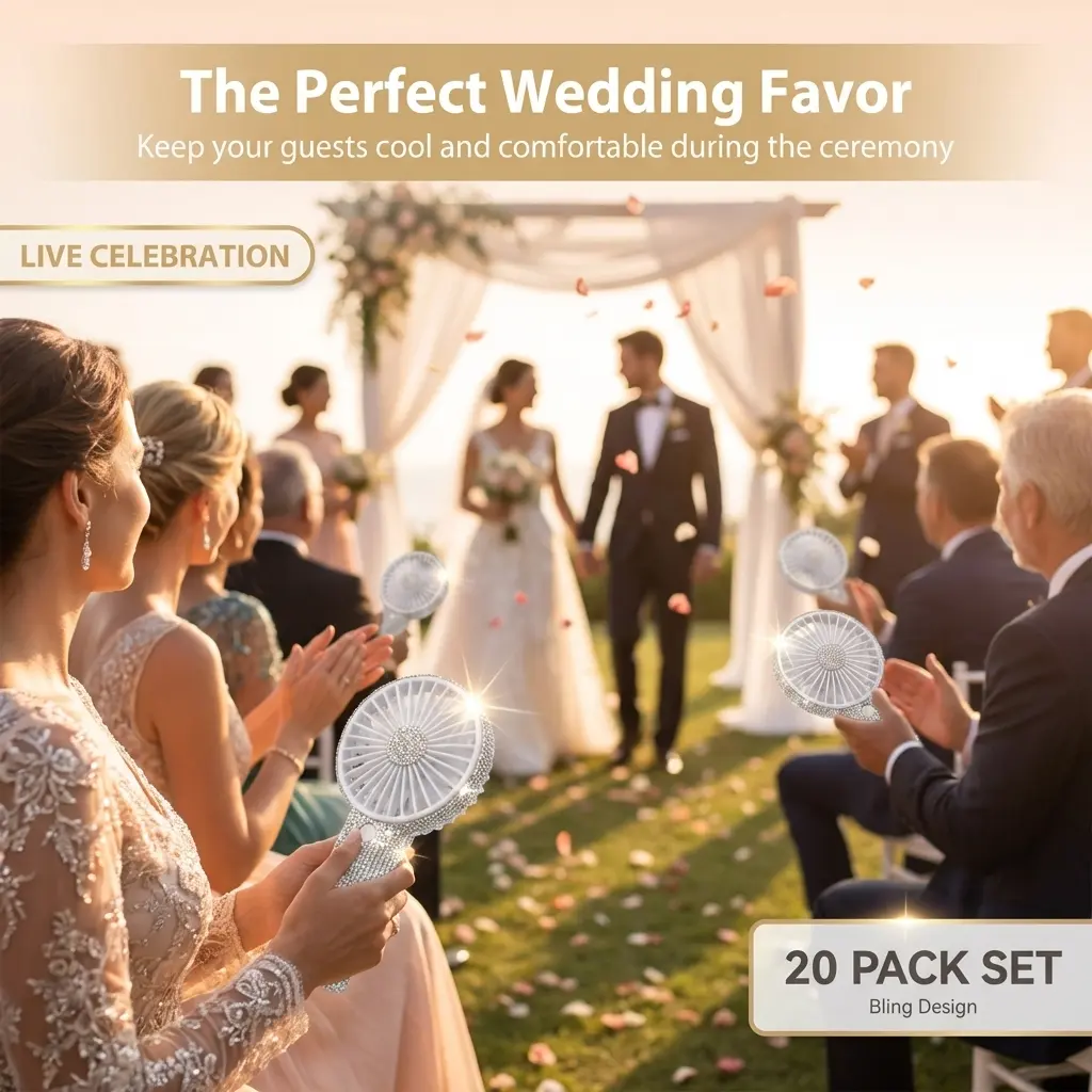 ·Stay cool while shining bright with this sparkling rhinestone handheld fan designed for parties, weddings, and special occasions.