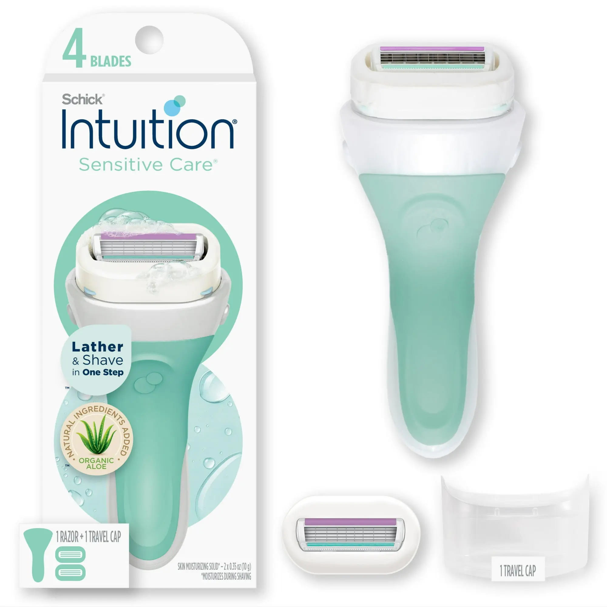 The Schick Intuition Sensitive Care Women's Razor is an all-in-one shaving system designed to eliminate the need for separate shaving cream or gel.