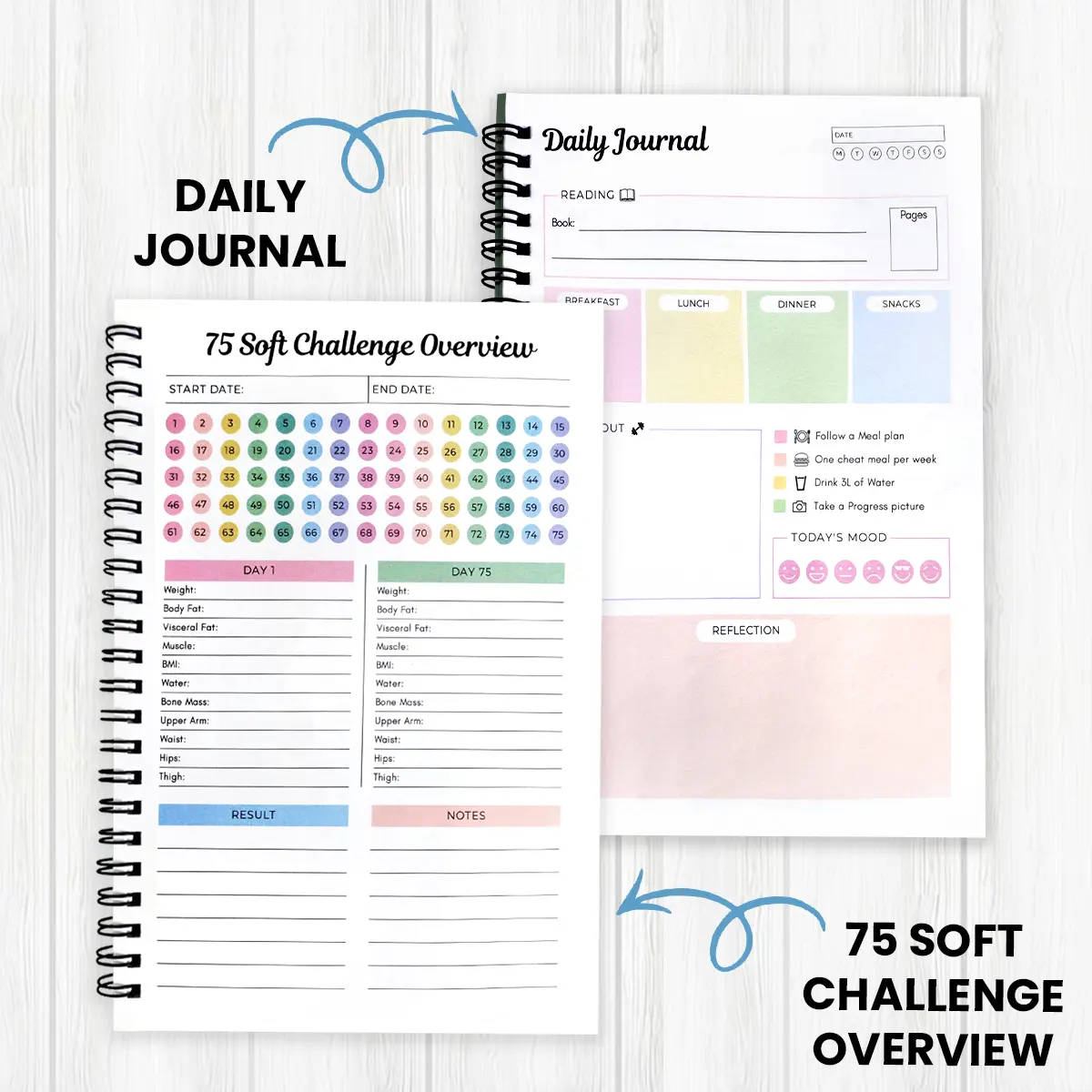 The planner uses clear daily and weekly formats to record your entire 75‑day process, helping you stay consistent and organized.