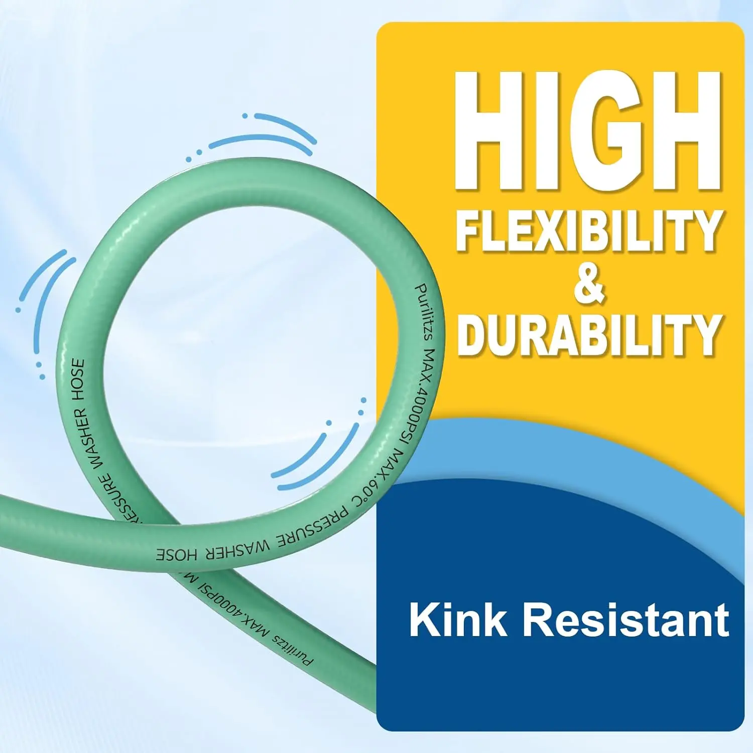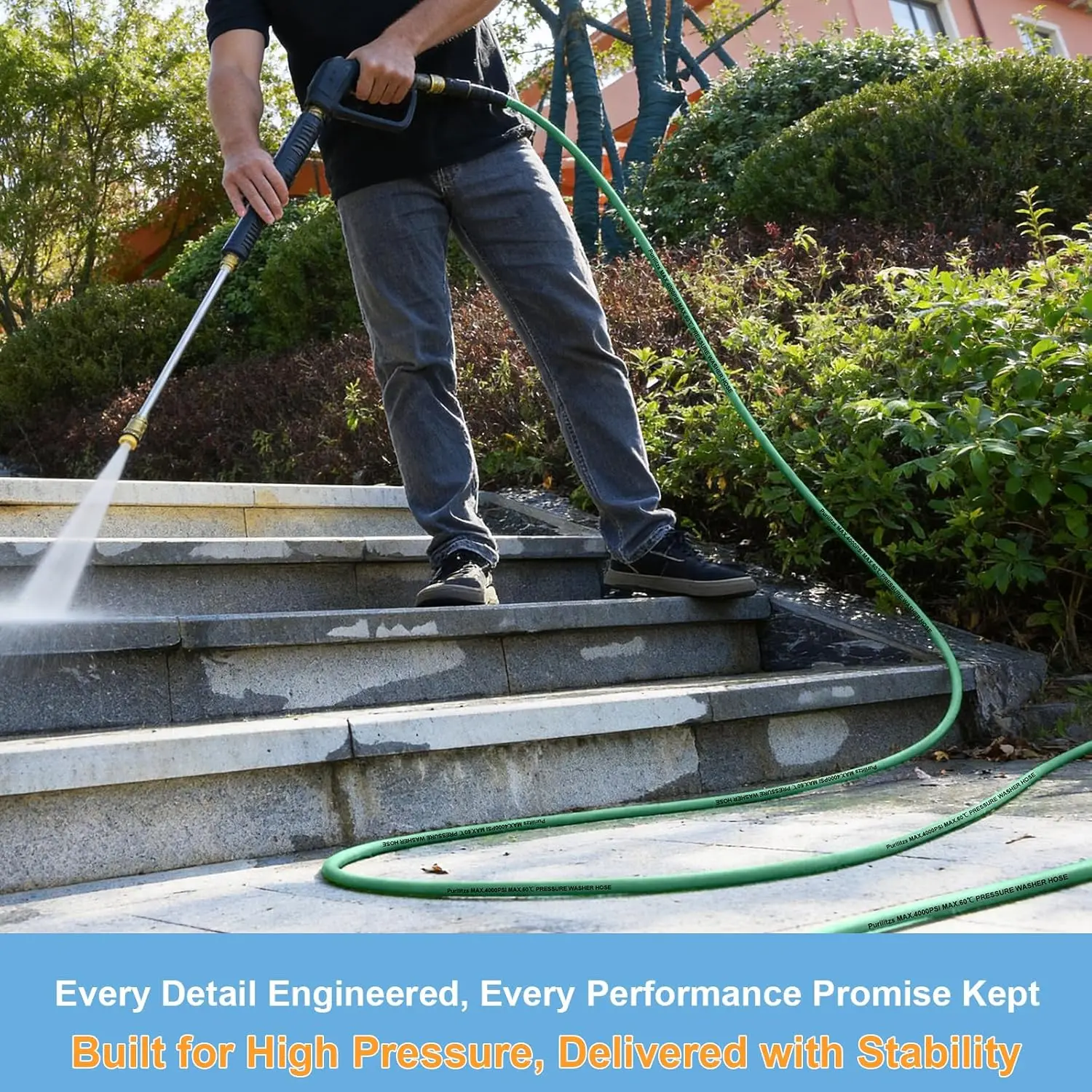 ·【Wide Application】It works with most high pressure washers and is suitable for both home and commercial use. Our power washing hose cleans cars, floors, patio, garden, windows, roofs, swimming pools and more.