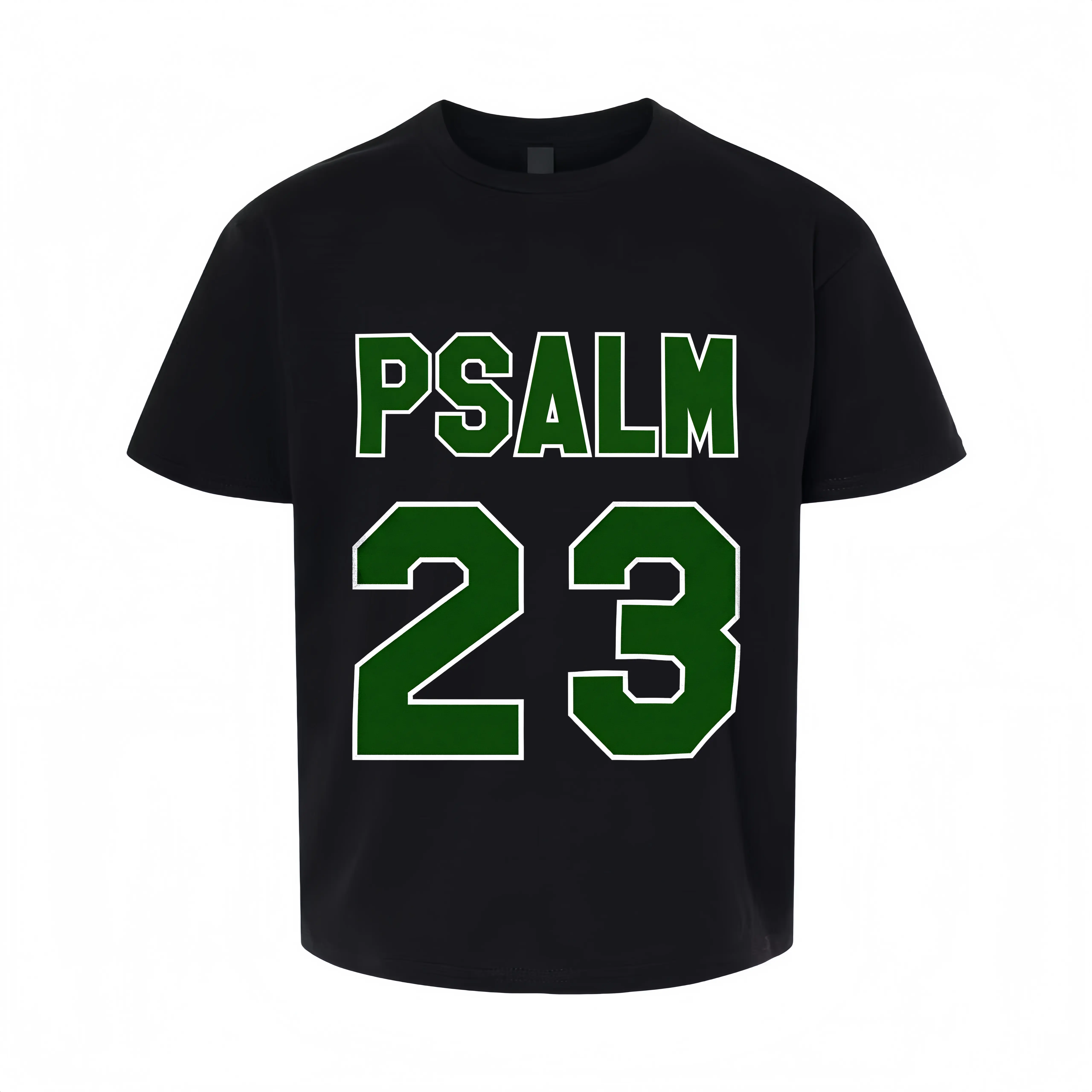 Women's Psalm 23 Jersey Premium T-Shirt - Cotton Casual Short Sleeve Crew Neck Top with Bold Green Lettering Soft Breathable Fabric for Holiday Parties and Gift Giving