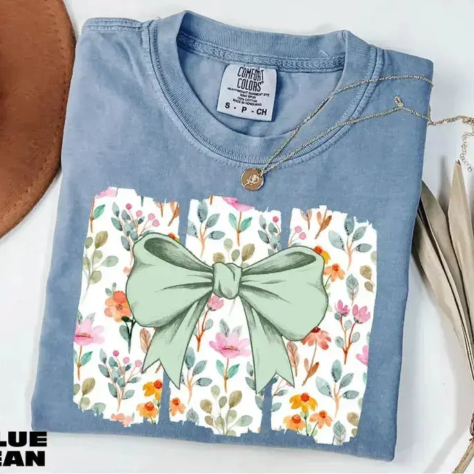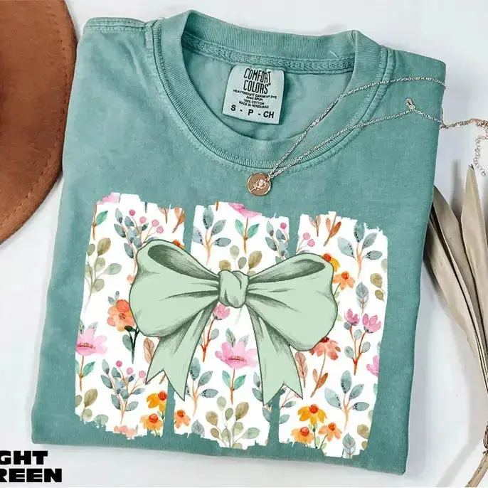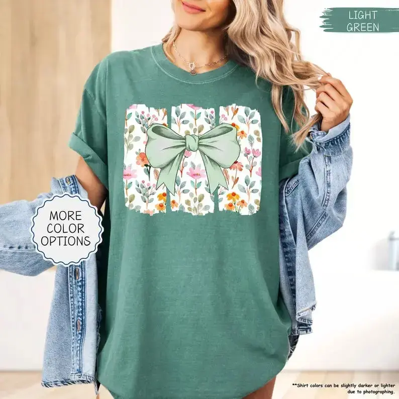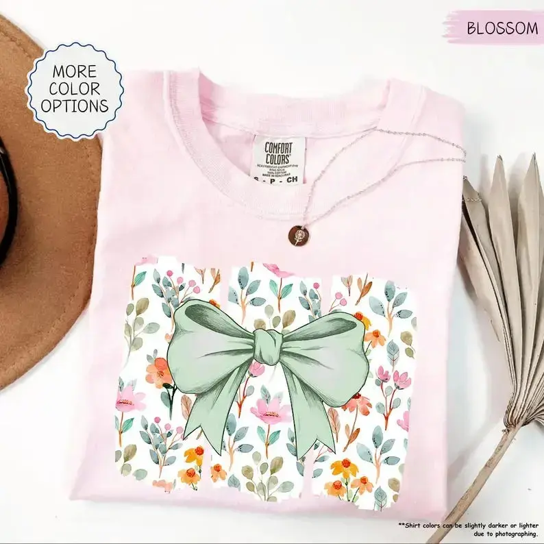 Comfort colors Coquette Bow TShirt, Wildflowers T-Shirt, Boho Flowers Tee, Cute Botanical Tee, Floral Bow T-Shirt, Gift for Her - DarkFlex