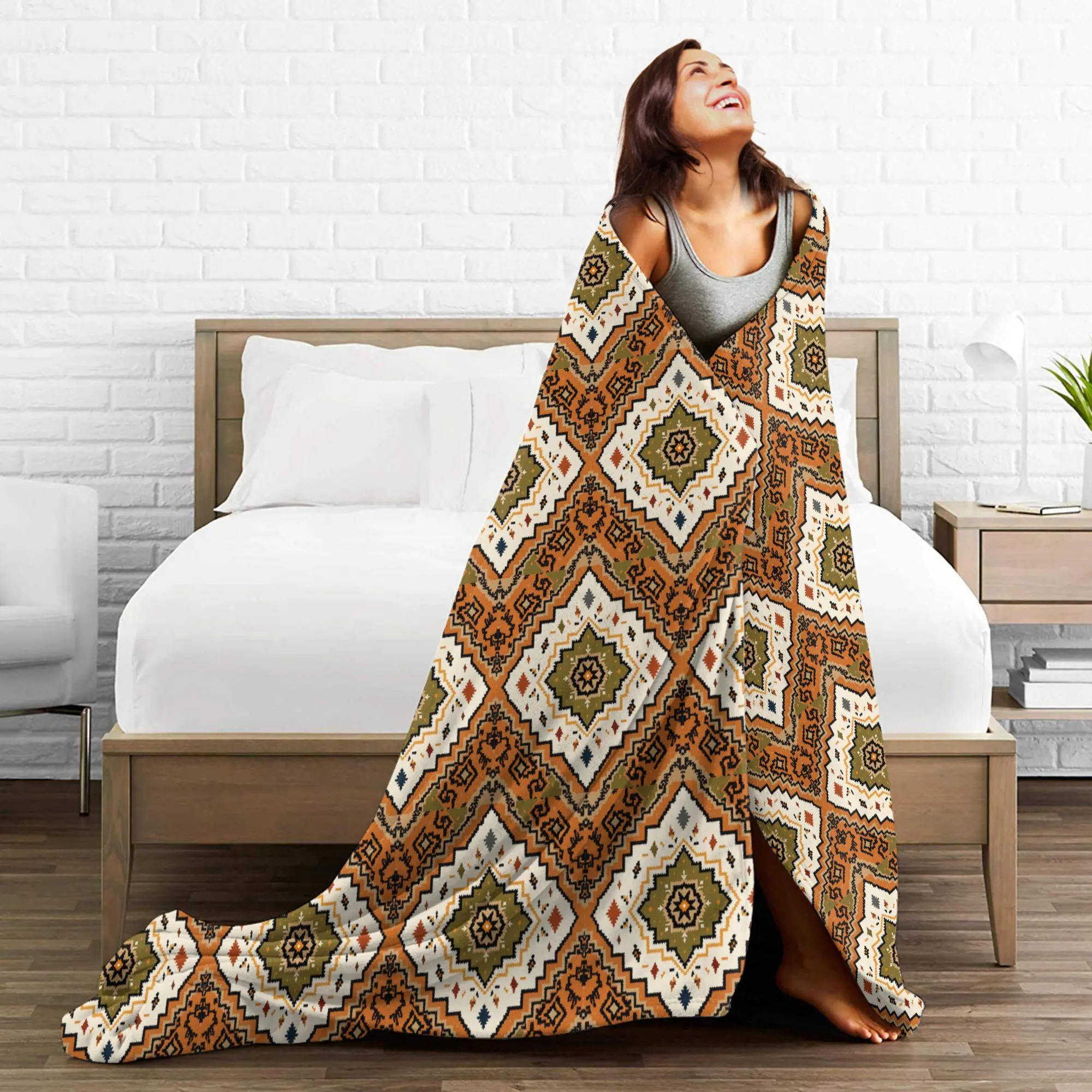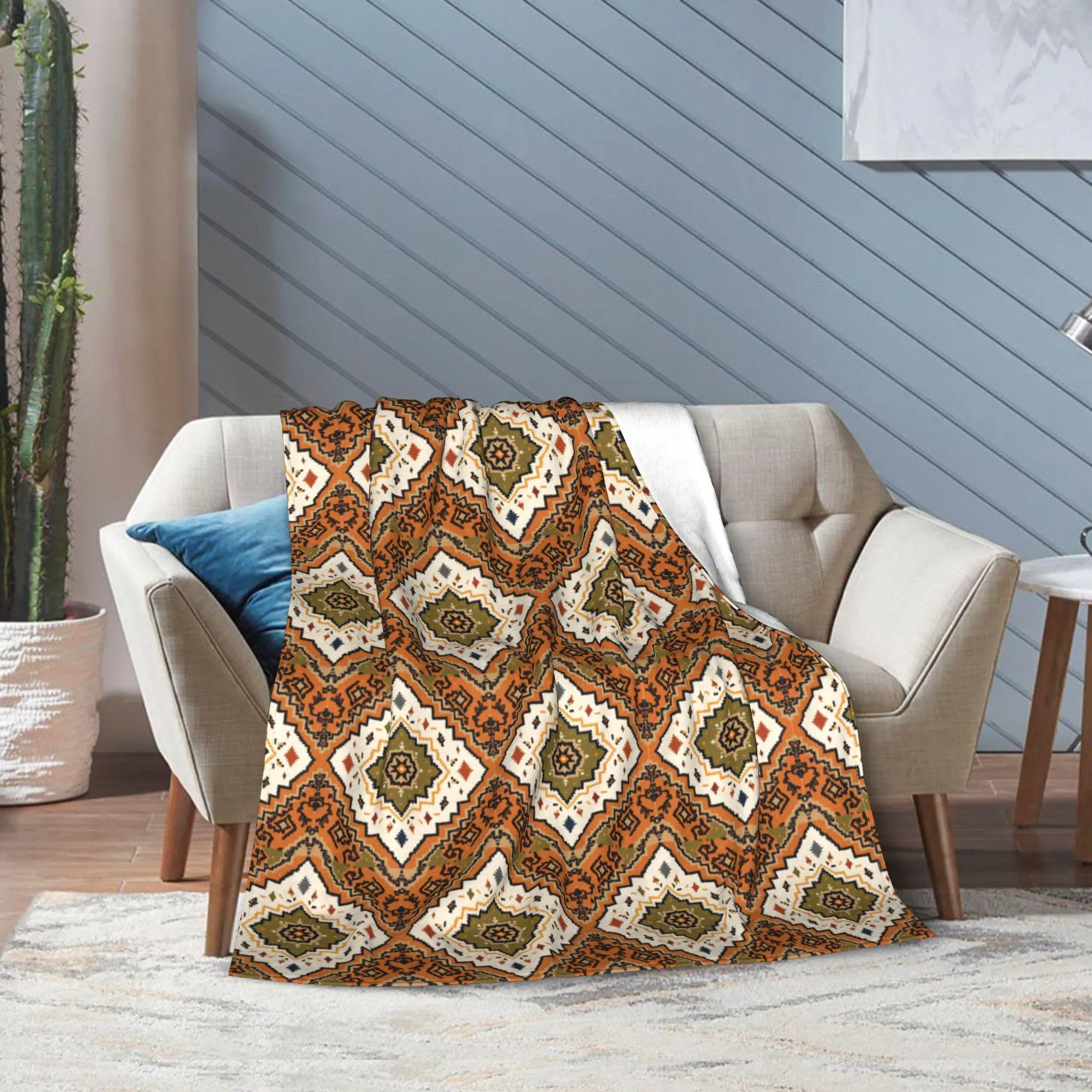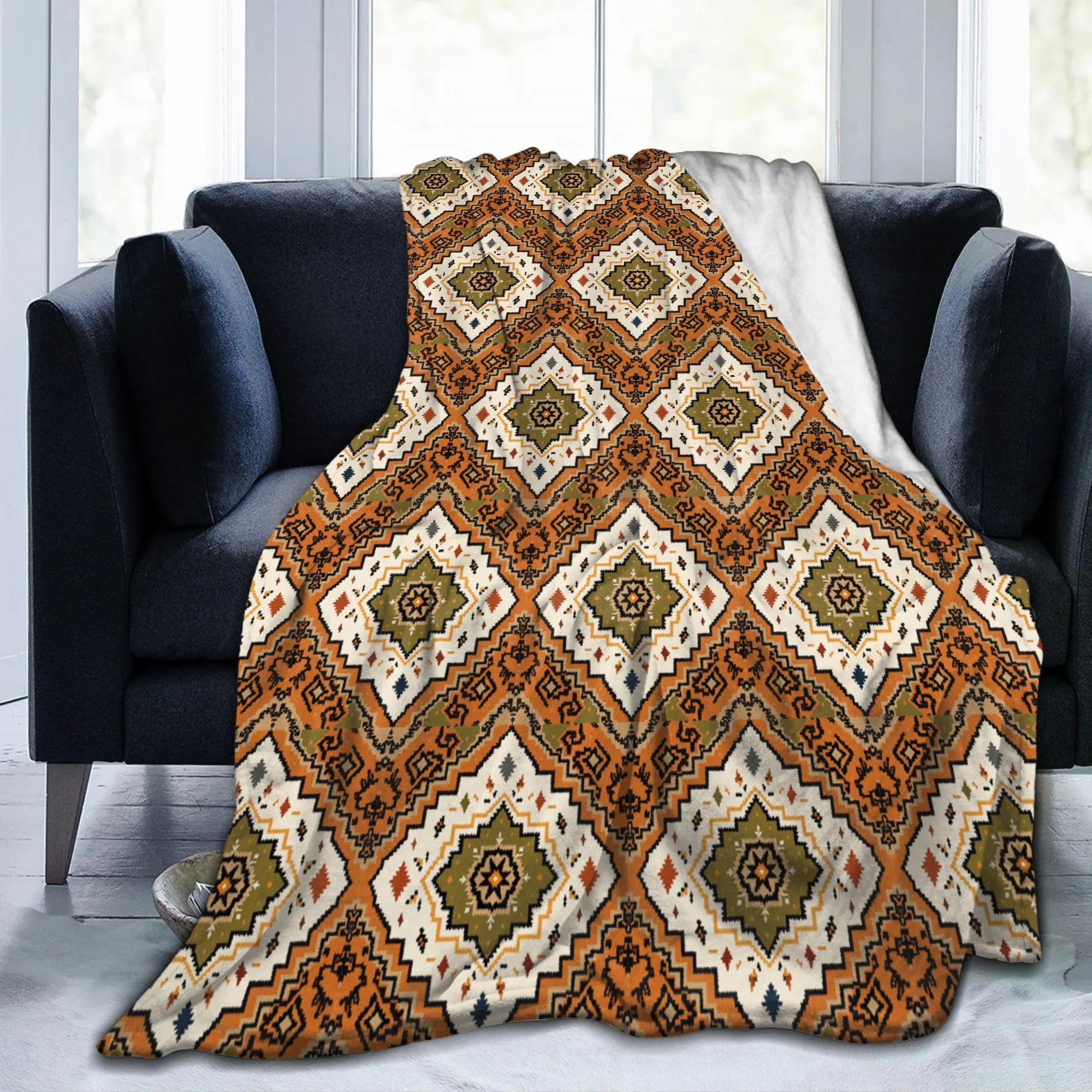 ❤【Pattern Design】 Couch throw Blanket with Navajo Southwestern Indian Carpet Style. The Elegant Design And High-Grade Fleece Bring Us With A Different Kind Of Soft Touch. Whether you want to use it in summer sleep or warm enough for winter use, the throw blanket will provide substantial warmth and excellent experience.