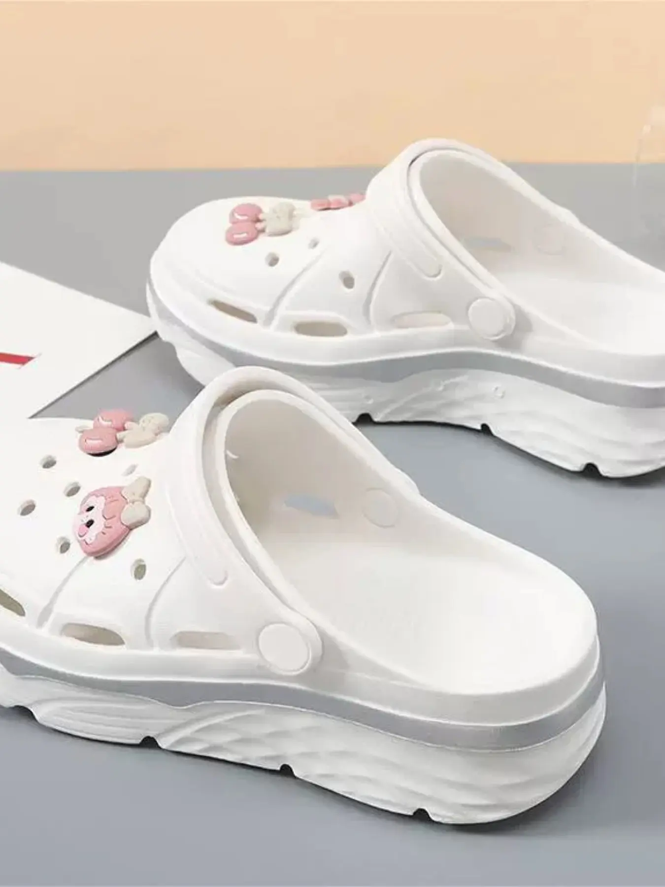 Women's Thick Sole Heeled Sandals, Floral Bow Design, Anti-Slip Lightweight Garden Shoes, DIY Accessories, Comfortable & Stylish
