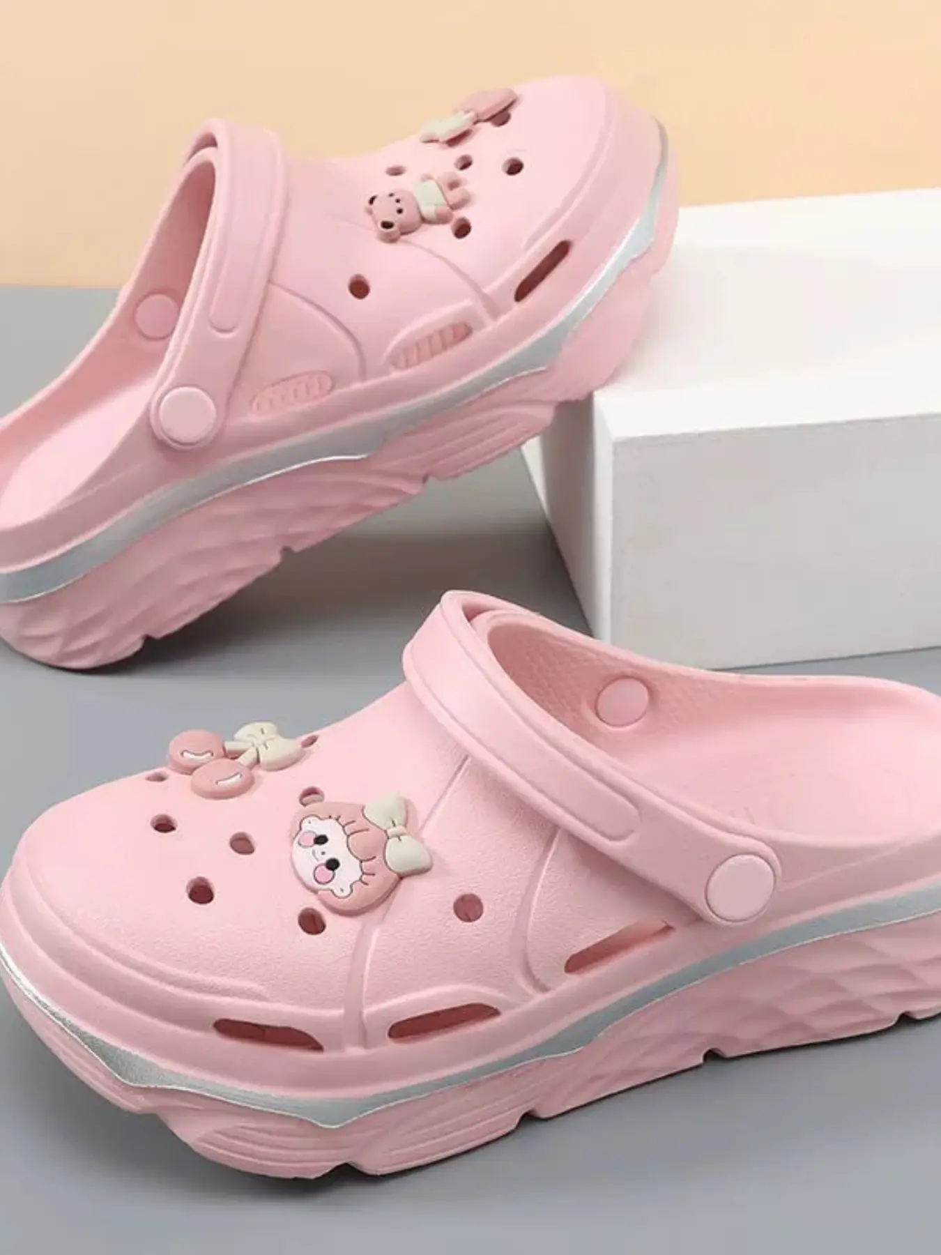 5. Women's Thick Sole Heeled Sandals, Floral Bow Design, Anti-Slip Lightweight Garden Shoes, DIY Accessories, Comfortable & Stylish