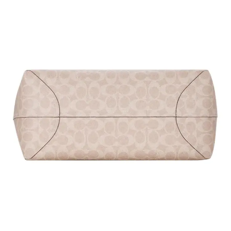 Materials: Front side: PVC-coated cotton canvas with debossed COACH logo print; reverse side: premium 100% cotton twill in soft khaki tone. Trim and hardware feature polished nickel-finish metal accents and genuine leather details.
