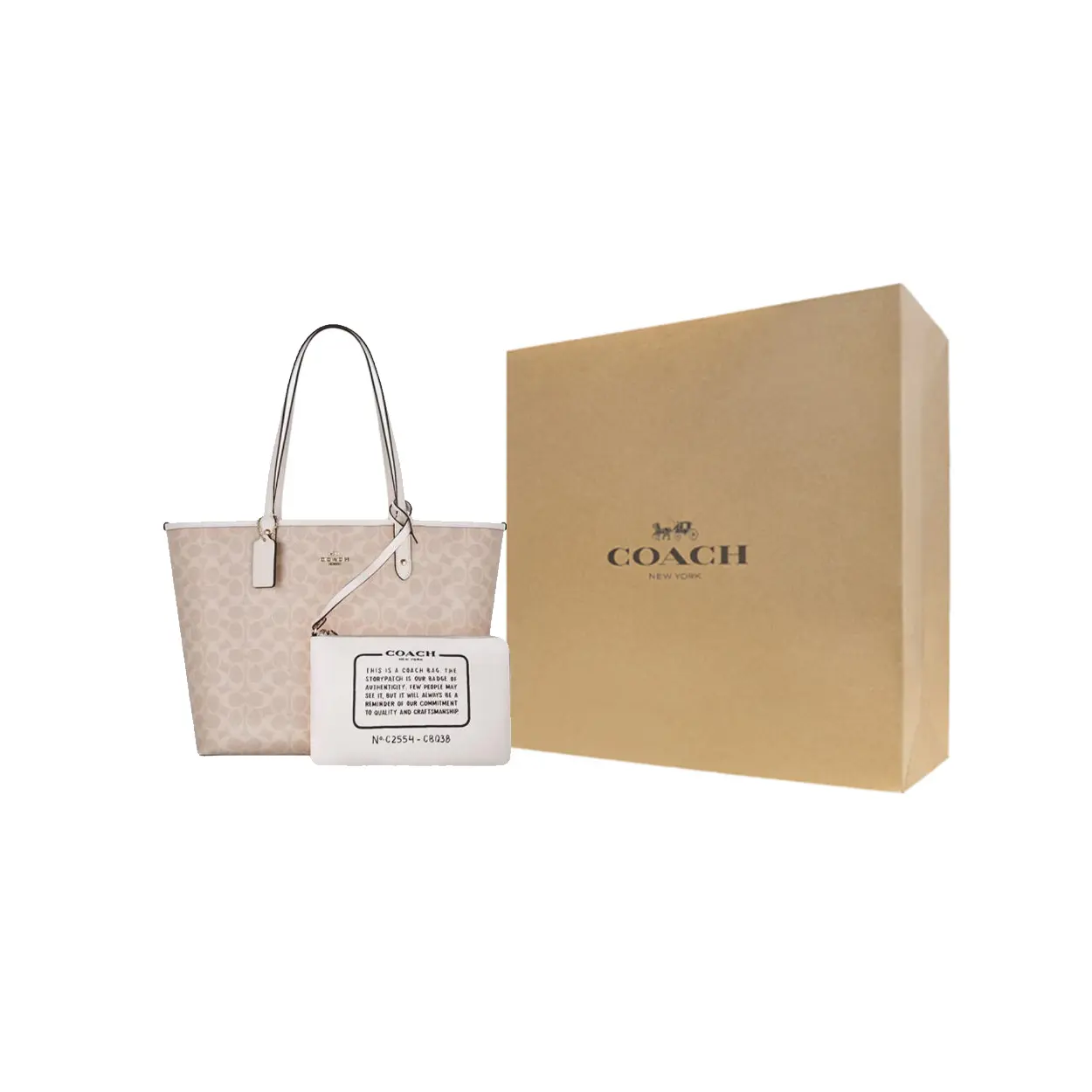 Packaging Dimensions: 14.5" W × 12.5" H × 5.5" D (37 × 32 × 14 cm). Ships in a branded COACH dust bag and signature gift box with ribbon and care card.