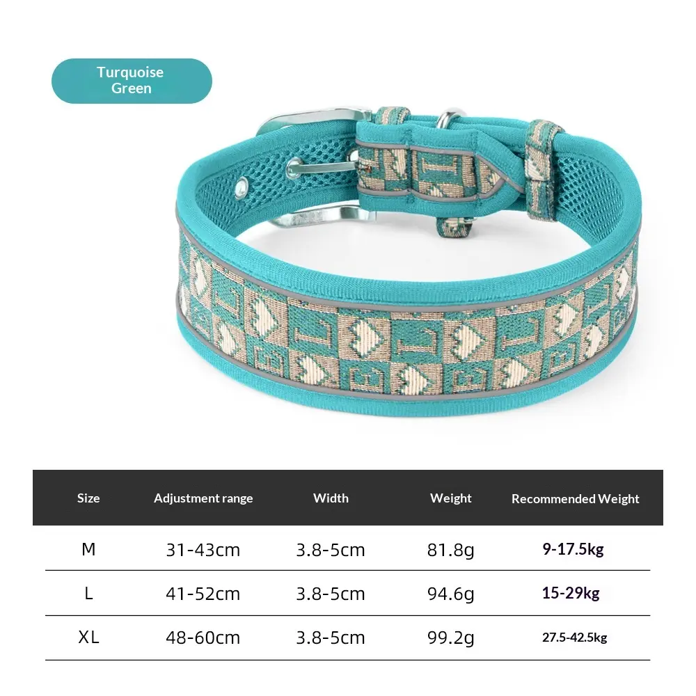 Tired of basic, uncomfortable dog collars?Give your furry best friend the perfect blend of style, comfort, and safety with our Aesthetic Boho Dog Collar.Specifically designed for medium and large breeds, this collar ensures your pup looks great while staying completely protected during every outdoor adventure!