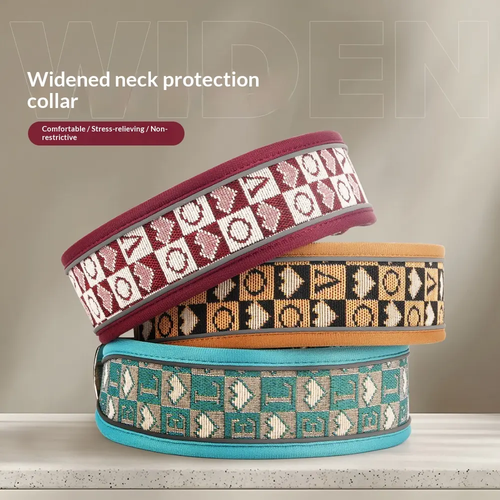 Aesthetic Boho Design:Featuring beautiful, intricate geometric patterns that instantly elevate your dog's style.Available in stunning Wine Red, Khaki, and Turquoise Green.