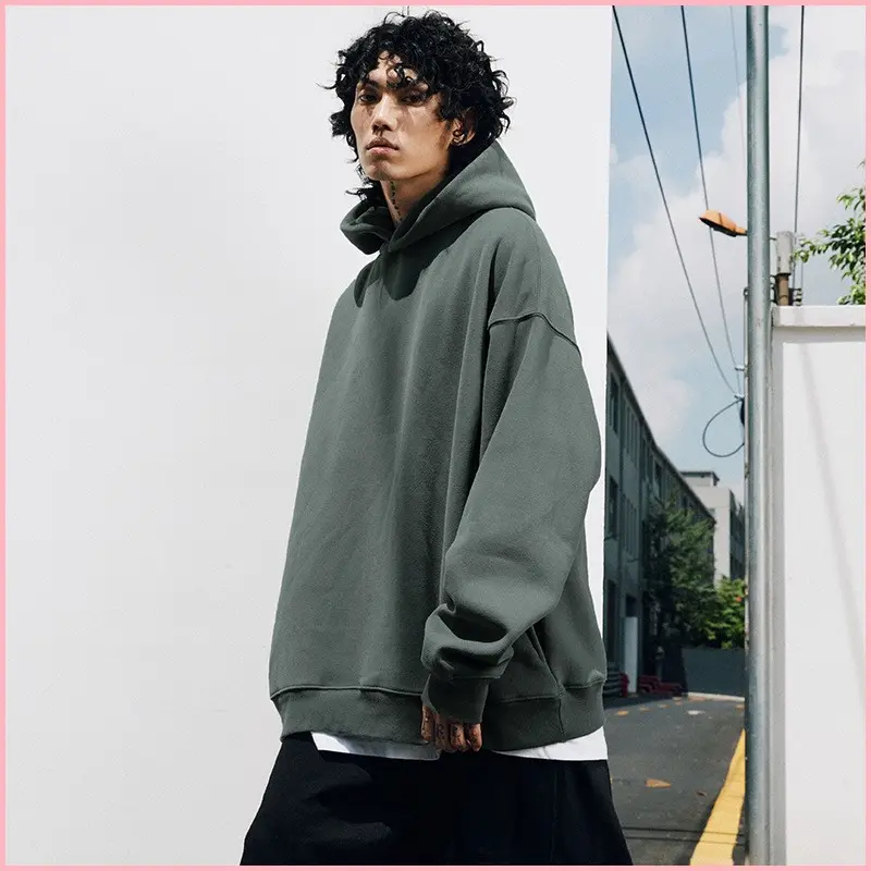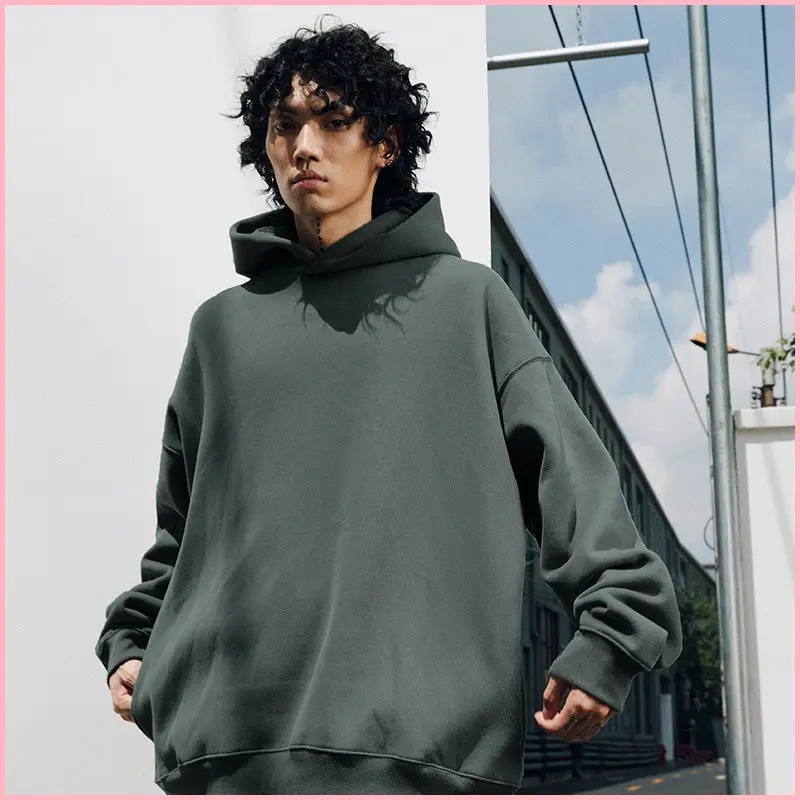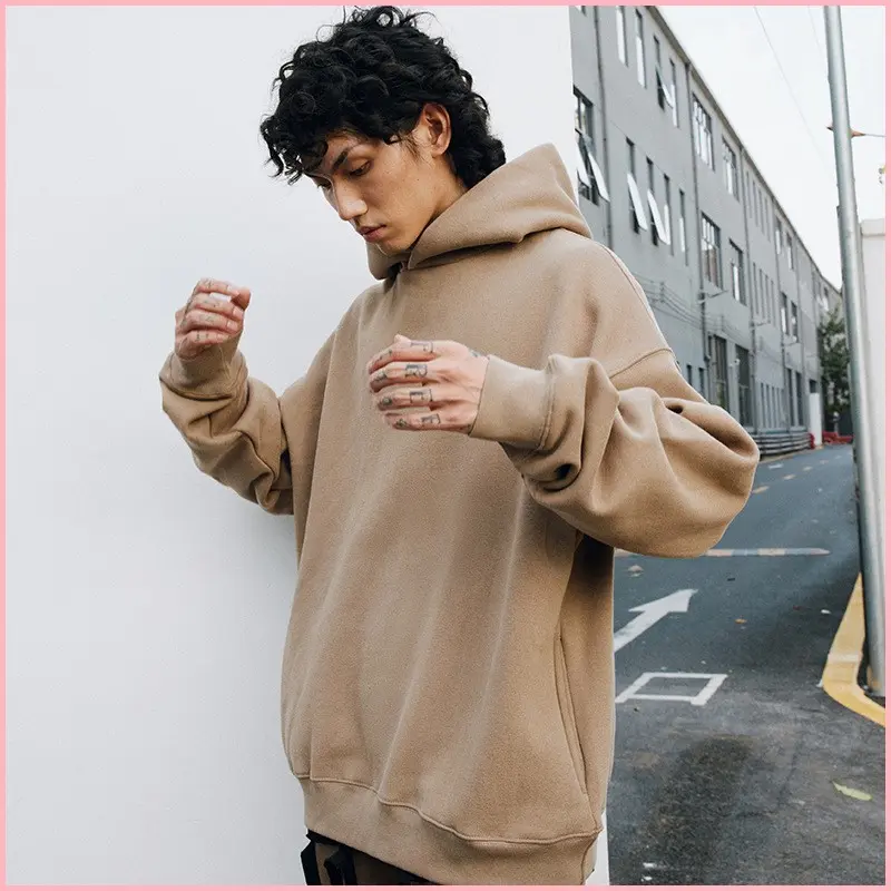 Trendy Brand Velvet Thickened Couple Hoodie Dropped Shoulder Casual Loose Solid Color Hooded Sweatshirt For Men