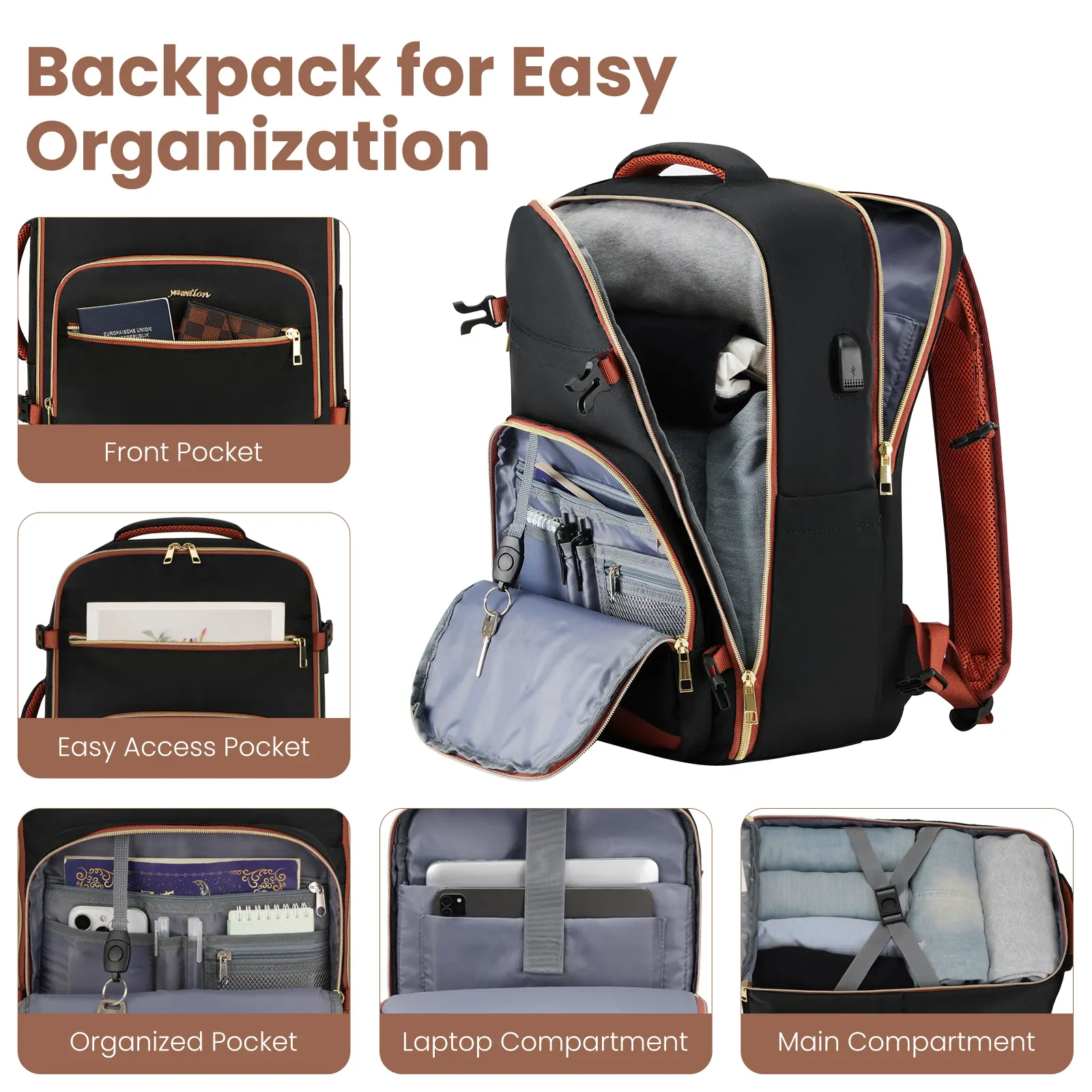 YAMTION 6 Piece Luggage Set, 20 Inch Carry On Hardside Luggage with Spinner Wheels, Travel Backpack, Packing Cubes, Toiletry Bag & Shoe Bag, Vintage Black Brown Luggage Set for Travel, Business, College, Vacation & Daily Commute