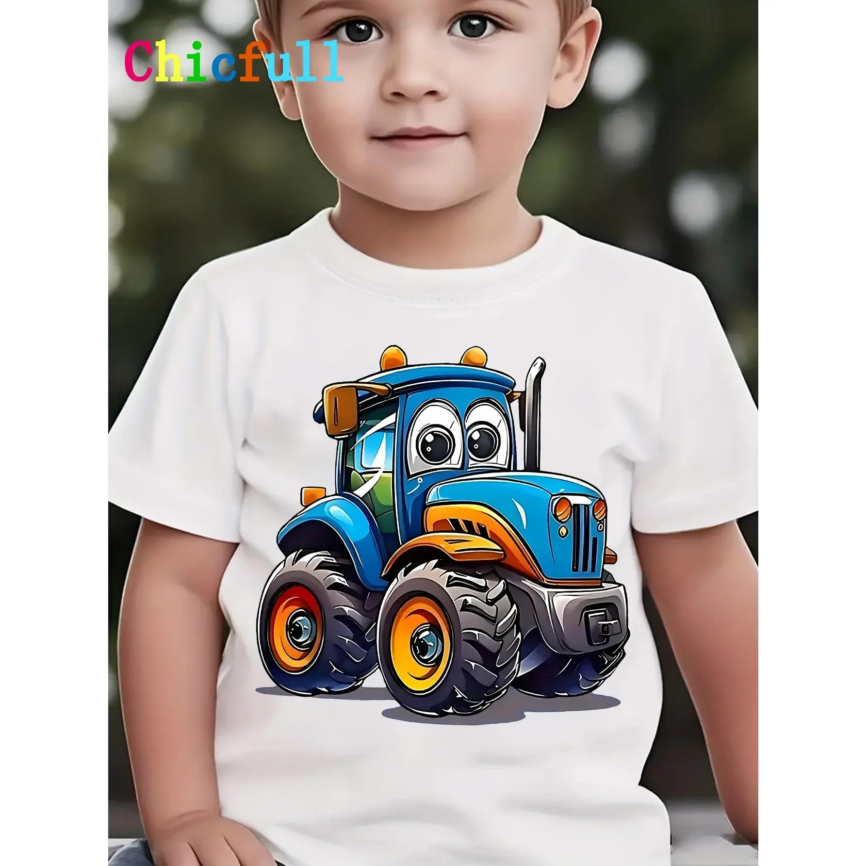 Boys' Cartoon Cute Car Print Creative Casual Trendy T-Shirt