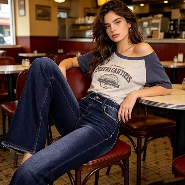 Vintage Blue Flare Jeans for Women, Slim Fit Leg-Lengthening, Euro-American Style Denim Pants