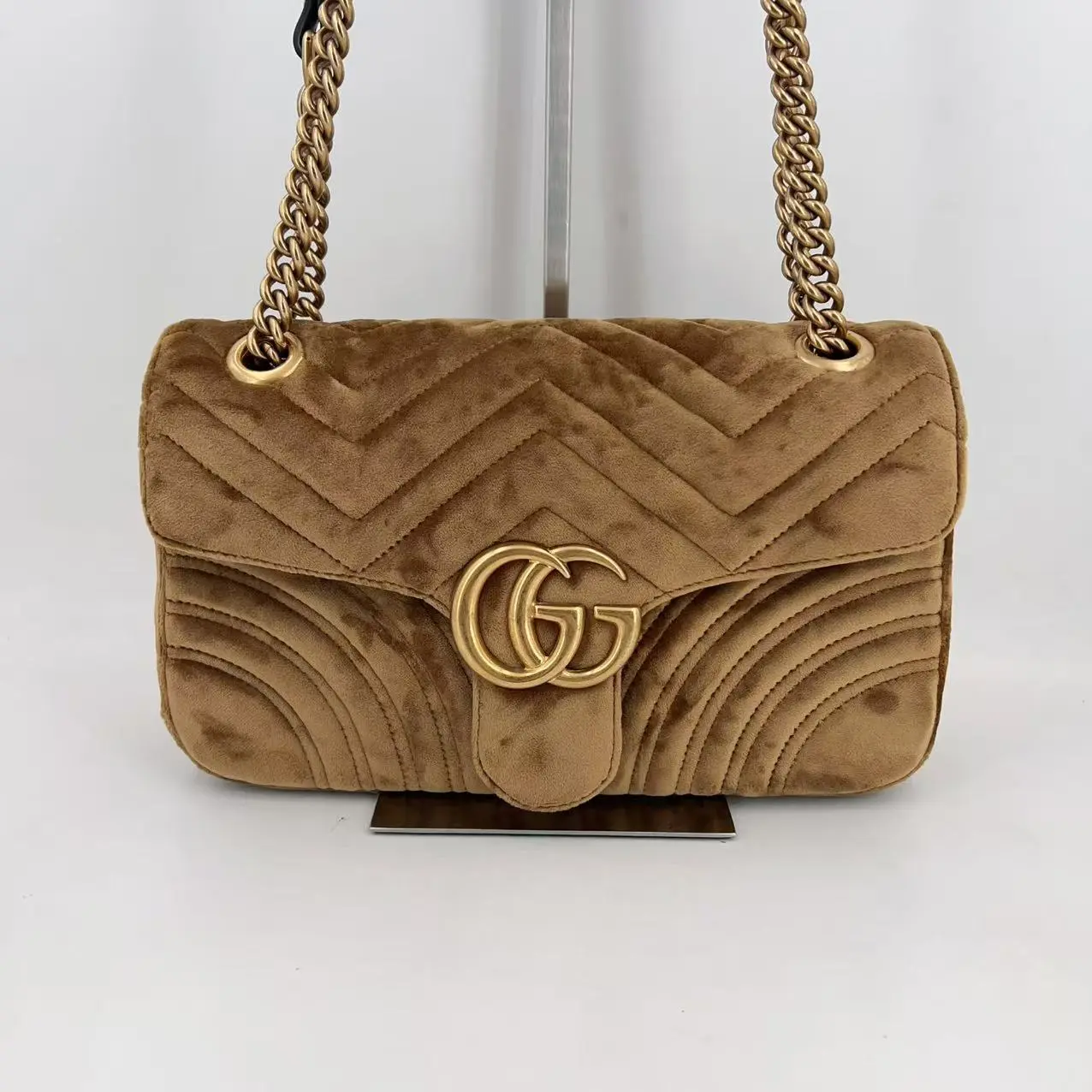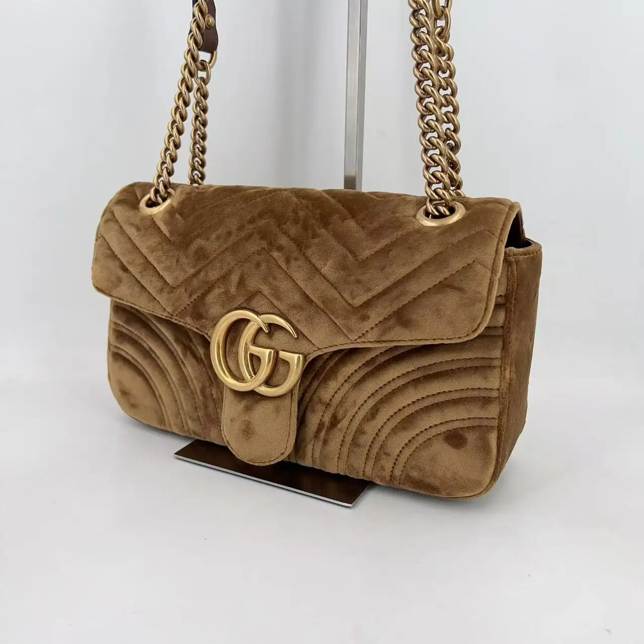 Pre-owned GUCCI leather Crossbody Bags Double G Marmont Small Brown Crossbody Bags