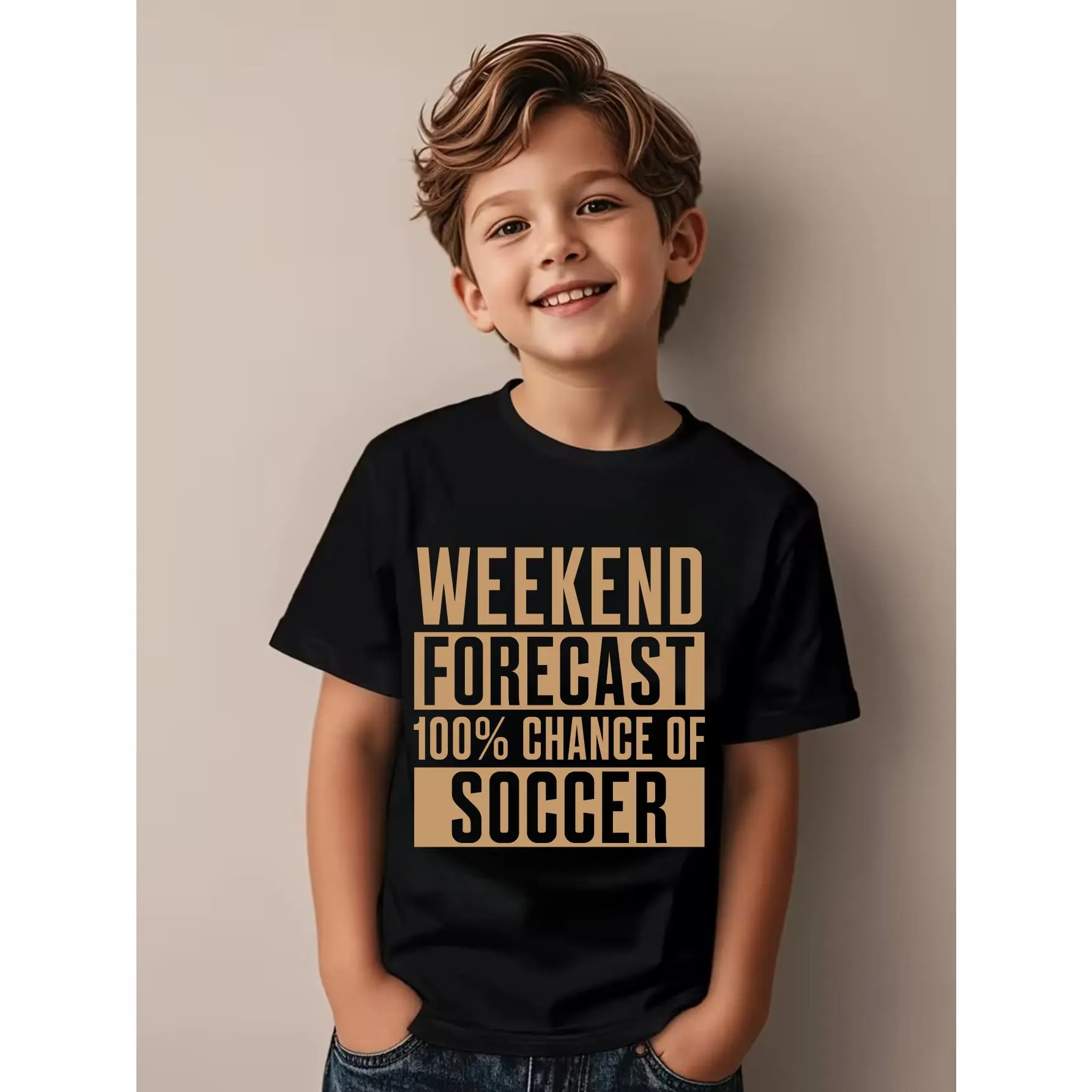 Kids T Shirt Black Weekend Forecast 100 Percent Chance Of Soccer Print for Sports And Casual Wear