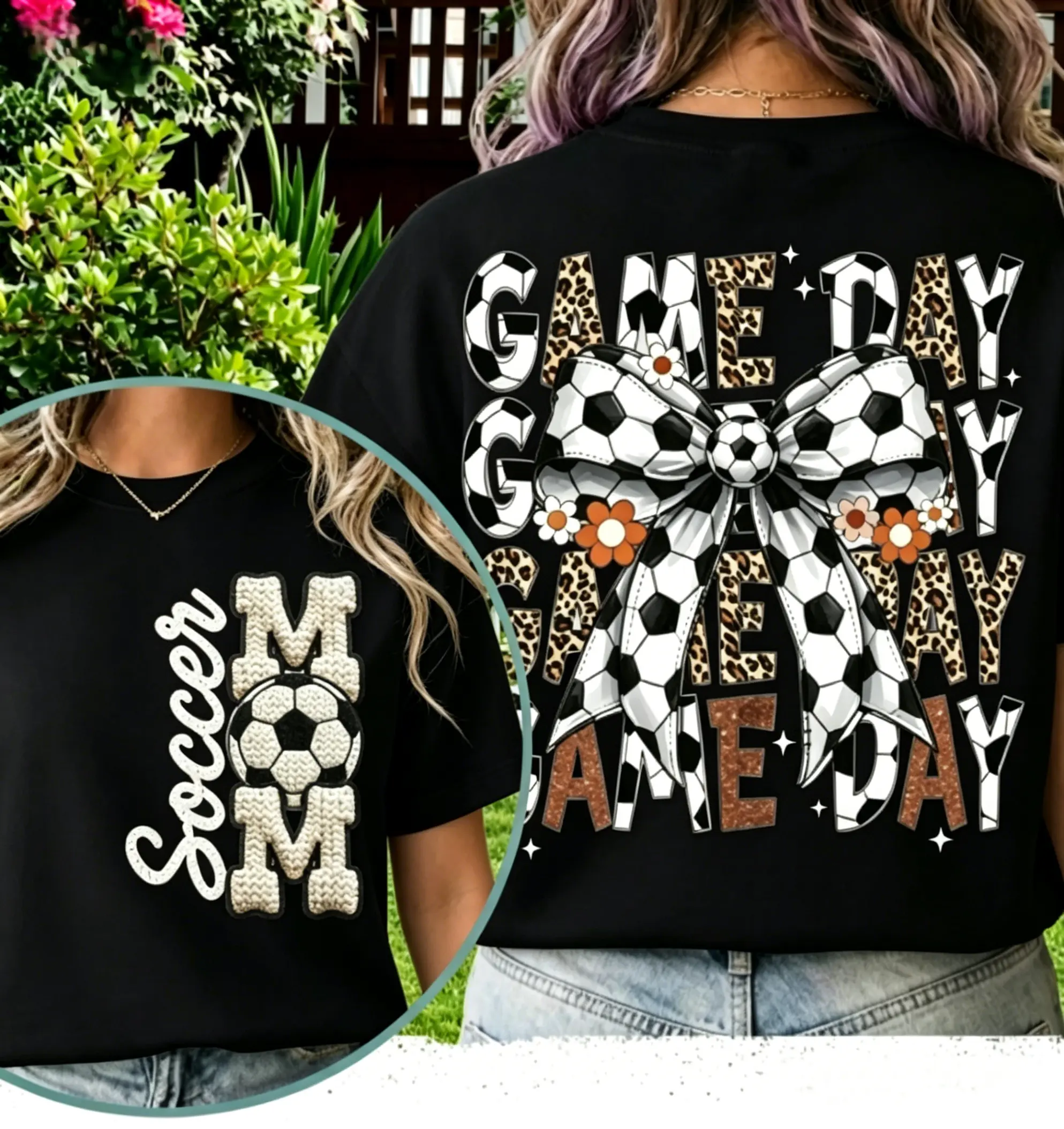 Soccer Mom, Game Day Coquette Bow, Leopard Print Soccer Ball, Trendy Back Print Shirt
