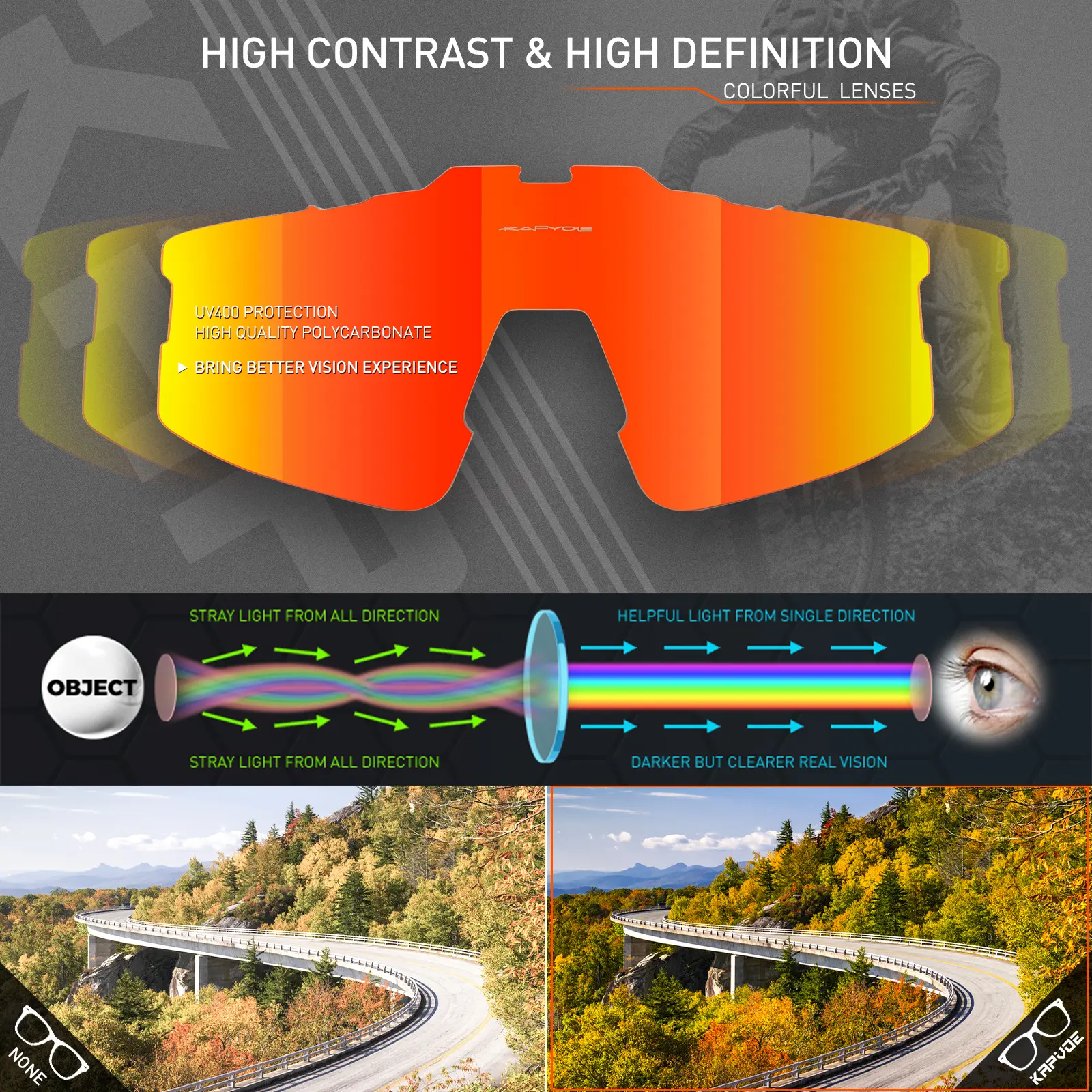 KAPVOE Cycling Glasses Mountain Bike Sunglasses MTB Windproof Motorcycle Goggles Men Women Triathlon Sports Running