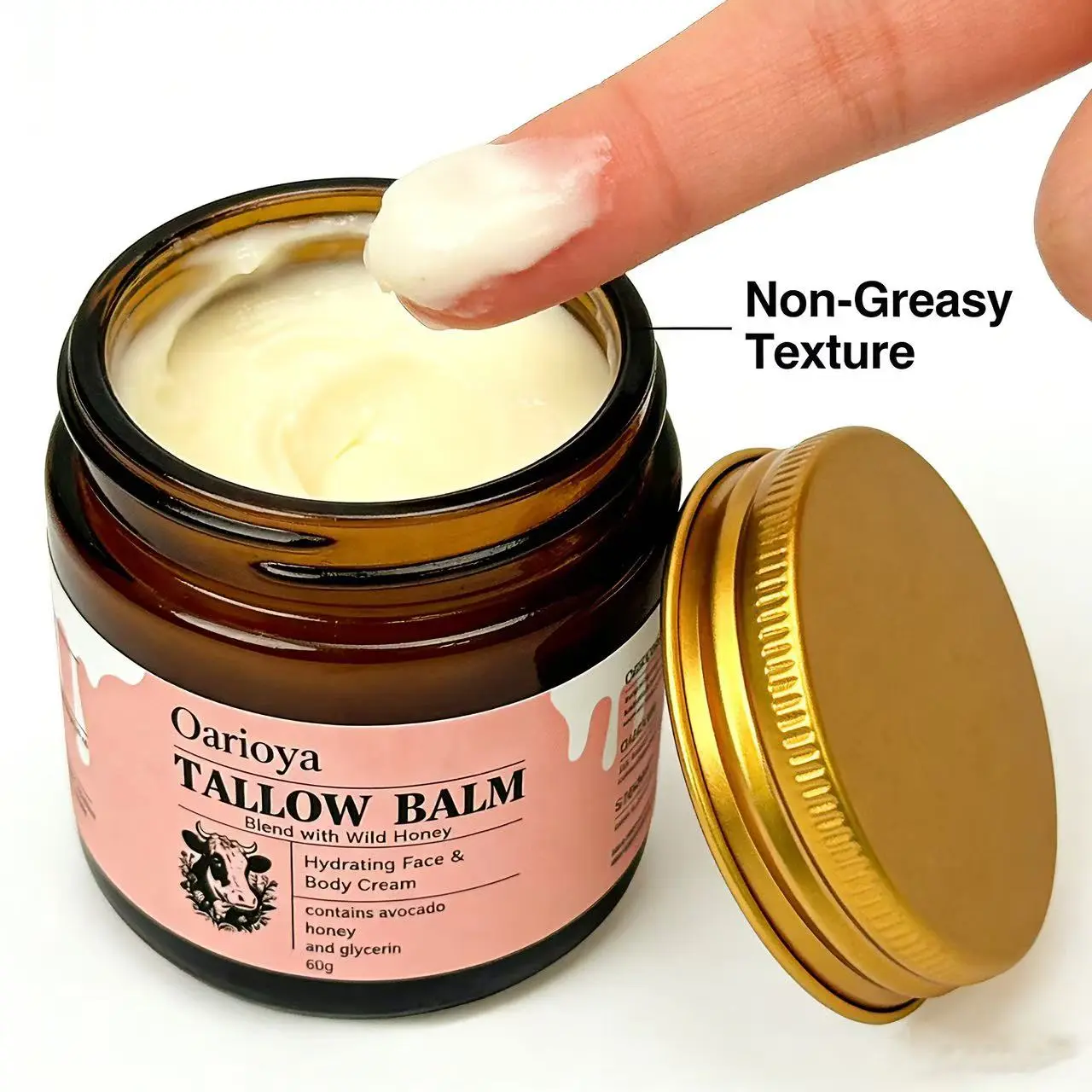Oarioya Tallow Honey Balm, 1 Box Organic Grass-fed Beef Tallow Balm with Raw Honey,Skin Improvement Cream, Moisturizing Cream for Soft, Smooth Skin