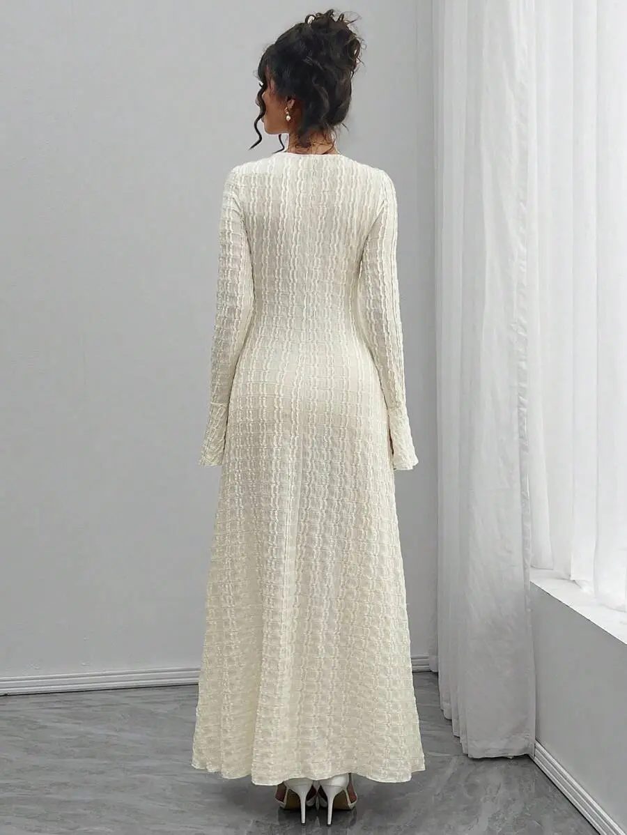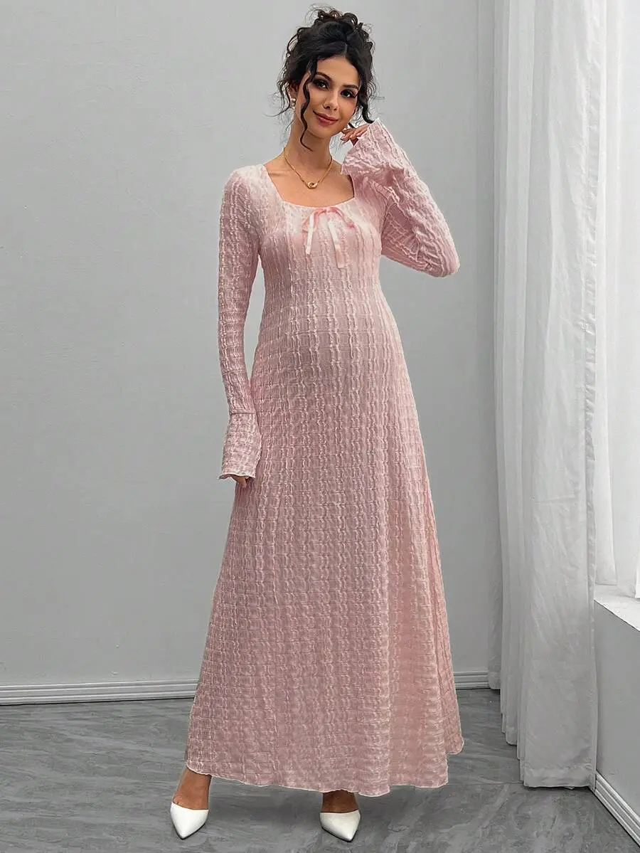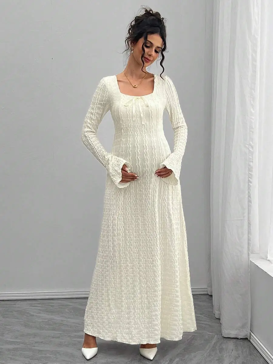 MISHELLA Elegant Sweetheart Neck Tie Front Flare Sleeve Maternity Dress
