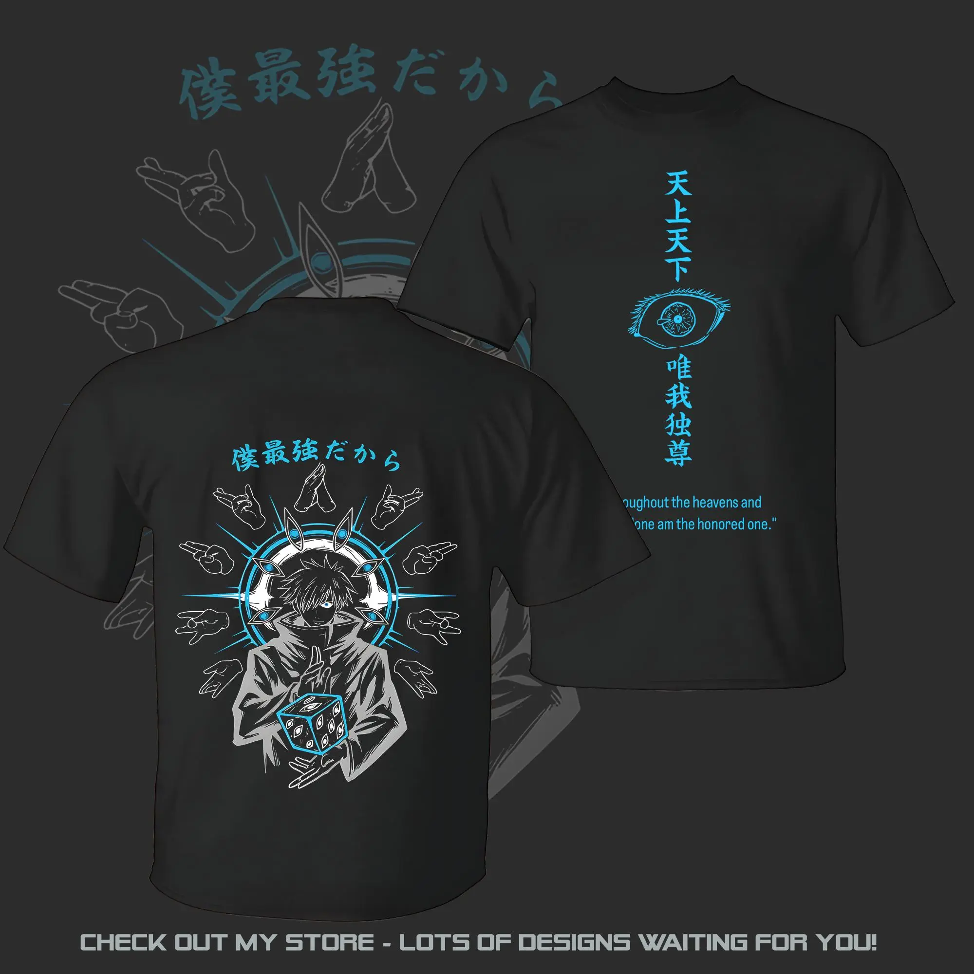 Gojo Satoru - Jujutsu Kaisen Washed Tee - Hoodie | Vintage Washed Anime Graphic Tee - Executioner Sword Judgement Court Dark Aesthetic Oversized Streetwear Shirt for Anime Fans, Summer Outfits, Gift For Him Her
