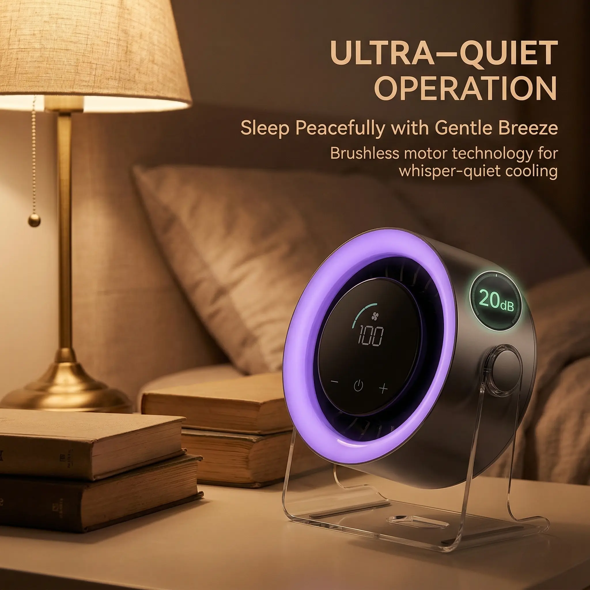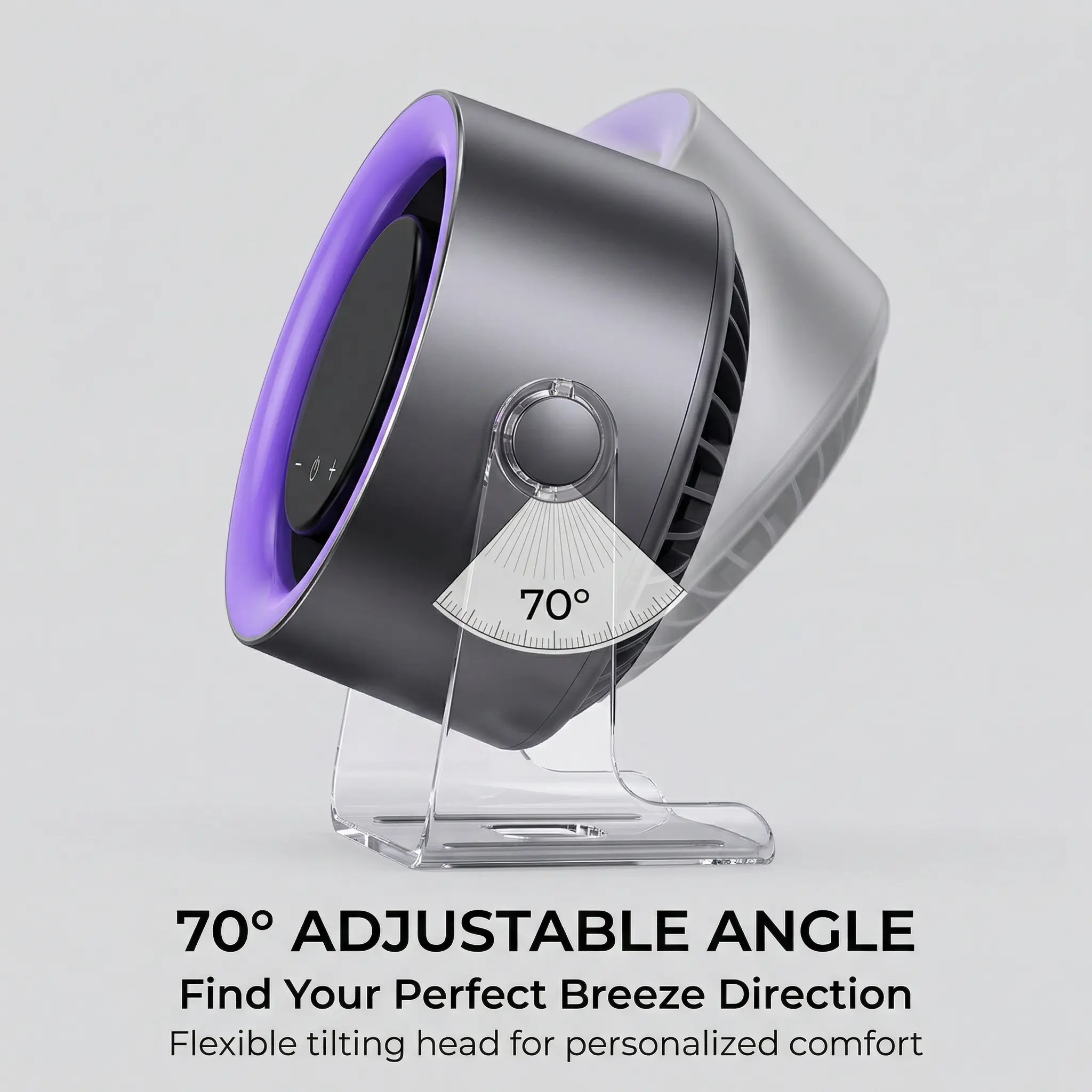 Desktop Fan Turbo Table Fan Travel Vacation Essentials for Office 100-Speed Digital Display Low Noise Rechargeable Battery Dual Adjustment Modes Quiet Cooling Quiet Desk Fan Portable, Purple