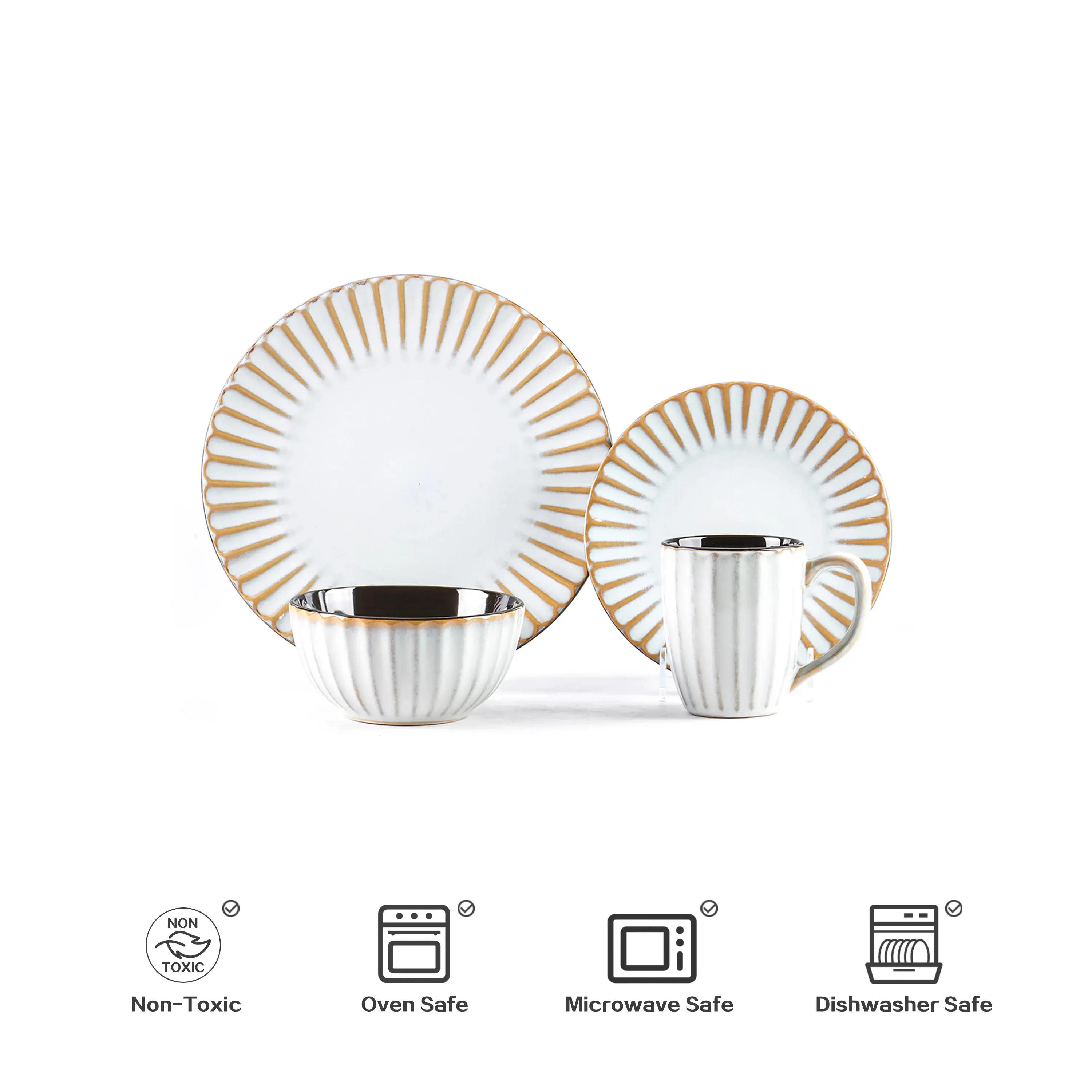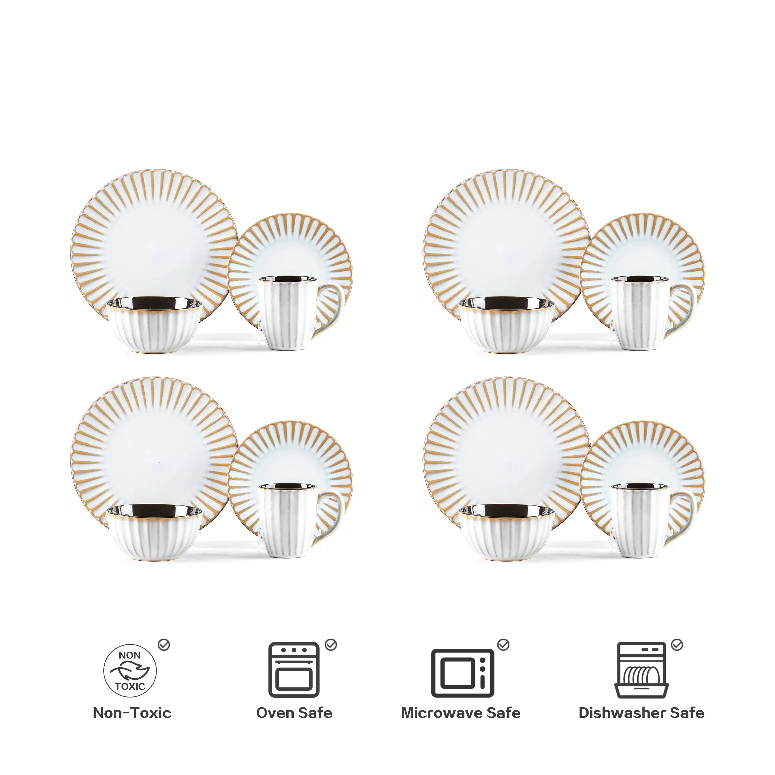 Promotion Golden Beige Stoneware Embossed 16pc Dinner Set High Luxury Fine Ceramic Sets Microwave Safe Dinnerware Sets