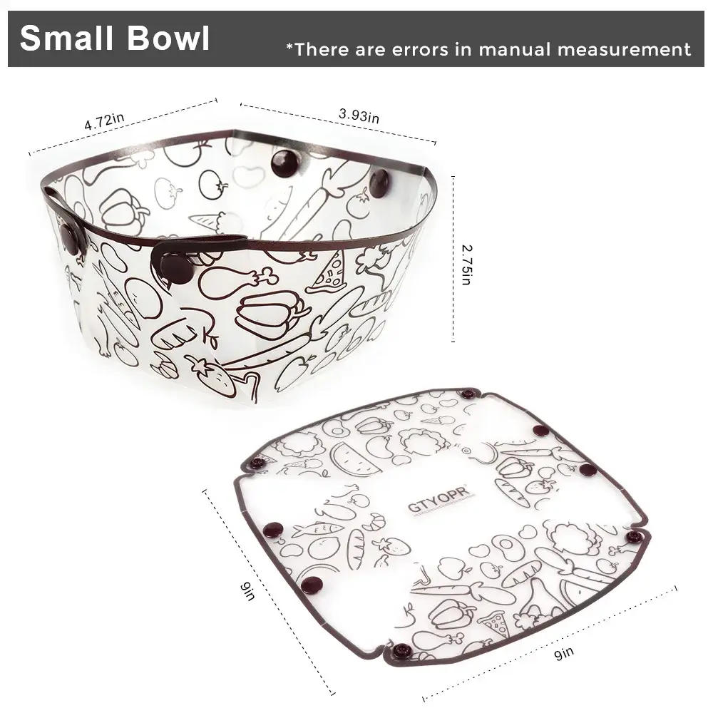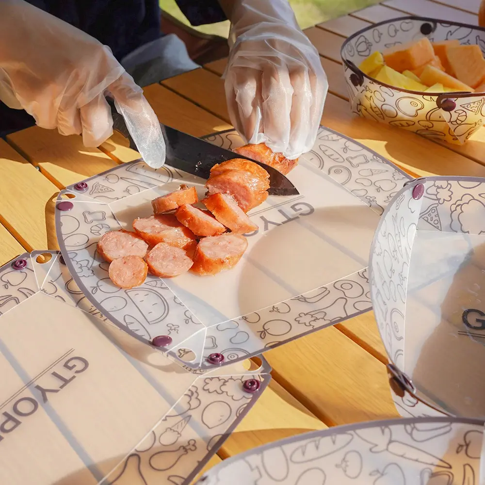 Installation: The folding tableware adopts a design of transparency and food patterns.The folding tableware has a total of 8 buttons, each with 4 female buttons and 4 sub buttons.Simply press the buttons on them to complete the assembly