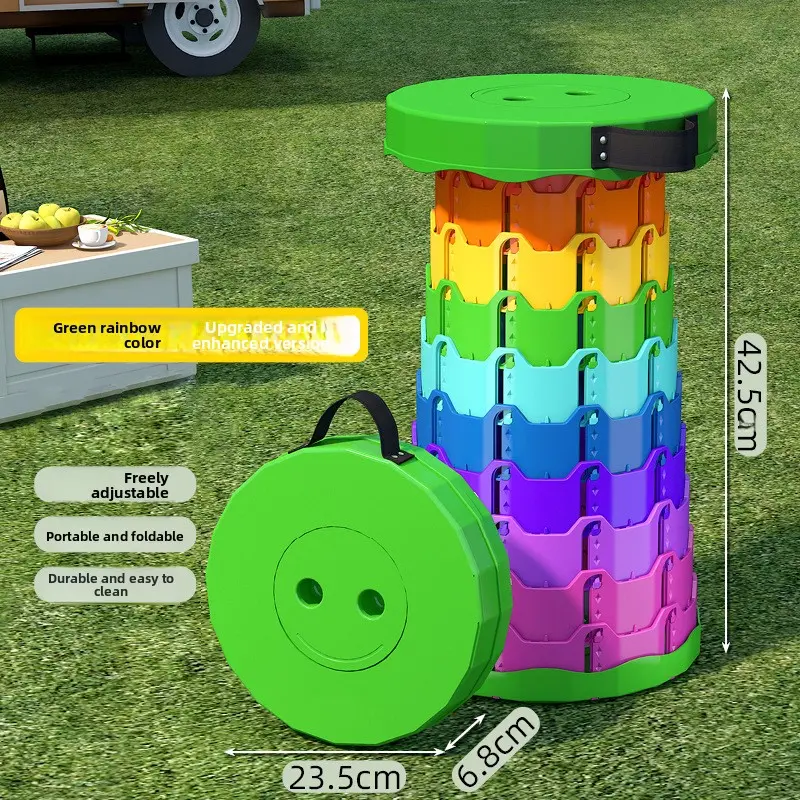 Cross-Border Wholesale Rainbow Telescopic Stool Outdoor Portable Plastic Folding Stool Adjustable Train Queuing Fishing Stool