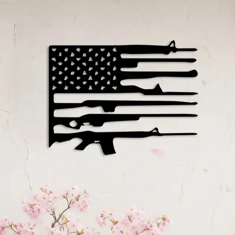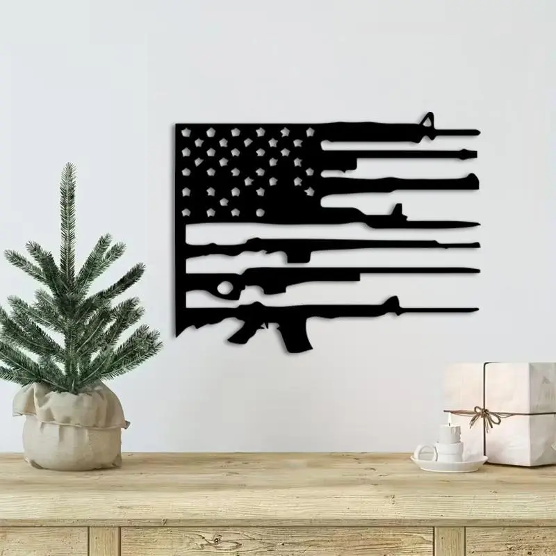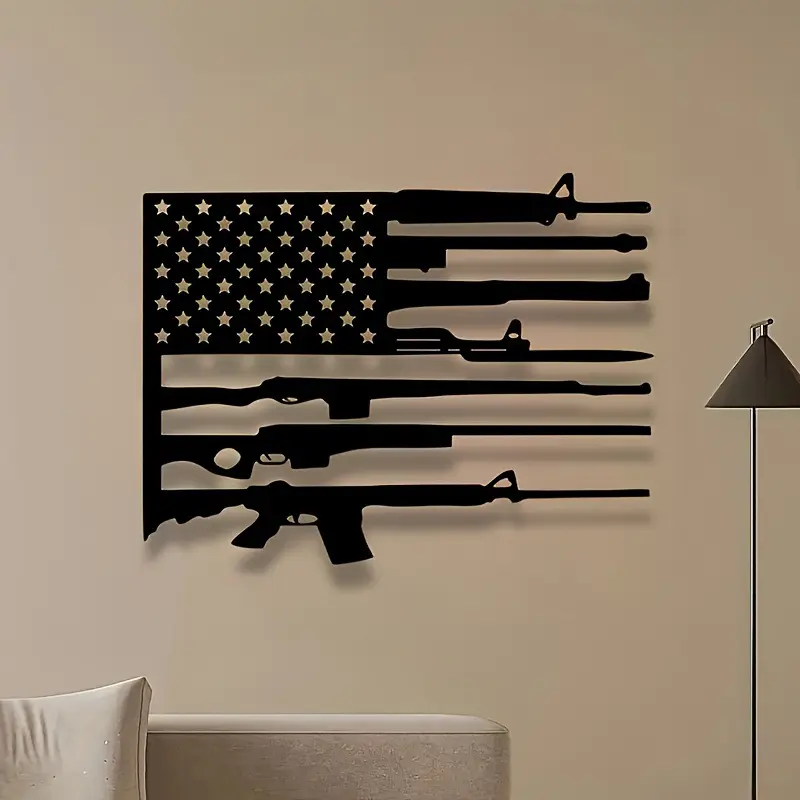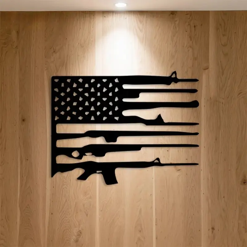 Key Features: • Patriotic-themed design (American Flag + Rifle) • Crafted from high-quality metal • Sturdy and durable with a fade-resistant finish • Easy to install • Perfect decor choice for homes, garages, and offices • An ideal gift for Independence Day, Veterans Day, and for any patriot