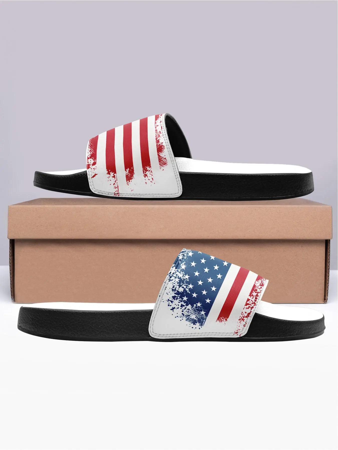 Men's USA Flag Slide Sandals, Comfortable Durable Stars & Stripes Print for Summer, Lightweight American Flag Pool Slides, Beach & Streetwear Fashion