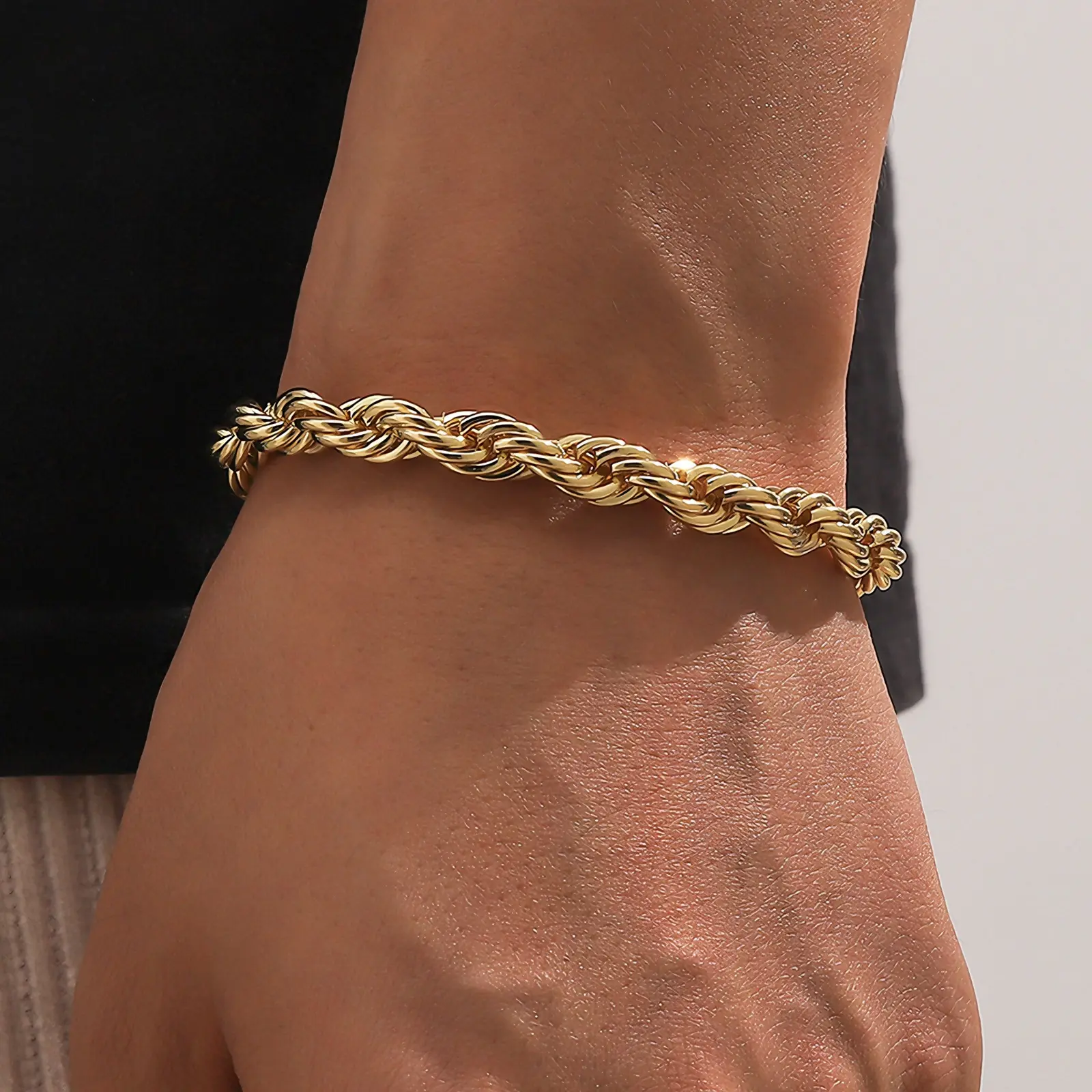 Gold Rope Chain Bracelet for Women Men, 6mm Twisted Link Jewelry