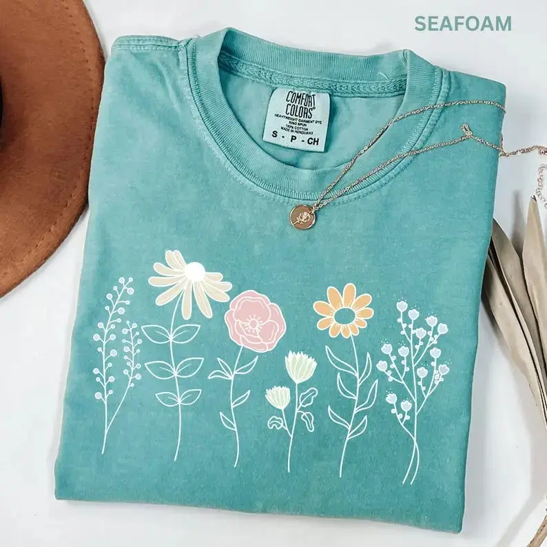 Comfort Colors Daisy TShirt, Boho Floral Cottagecore T-Shirt, Botanical Tee, WildFlower TShirt, Nature Spring T-Shirt for Women - TrendWear USA