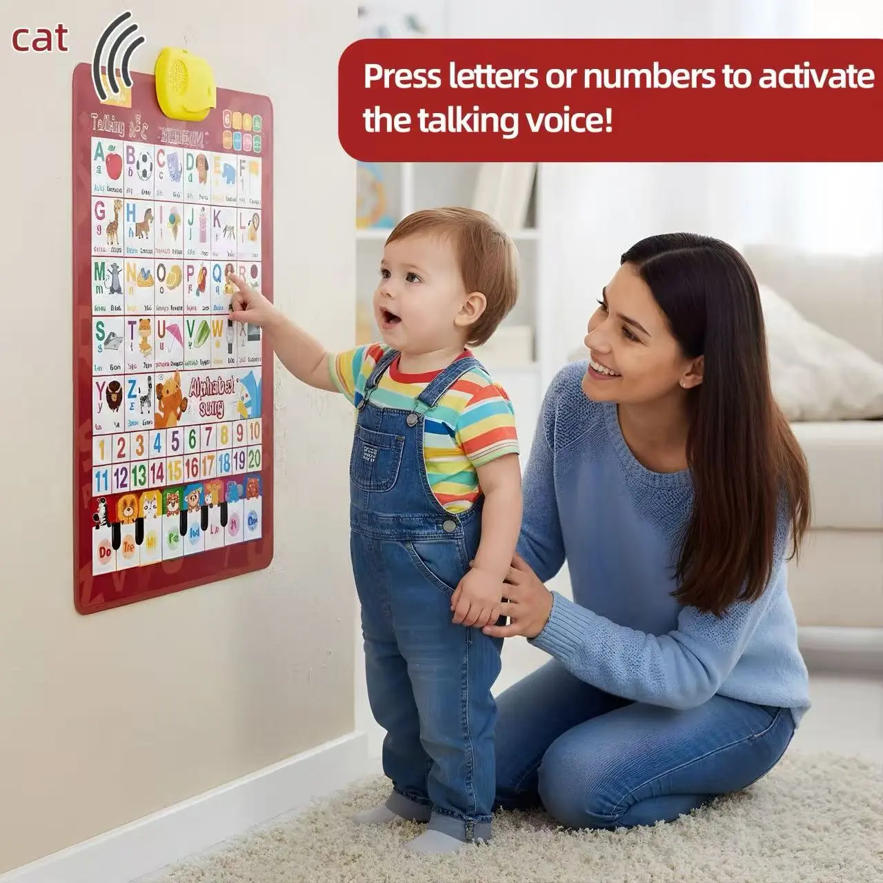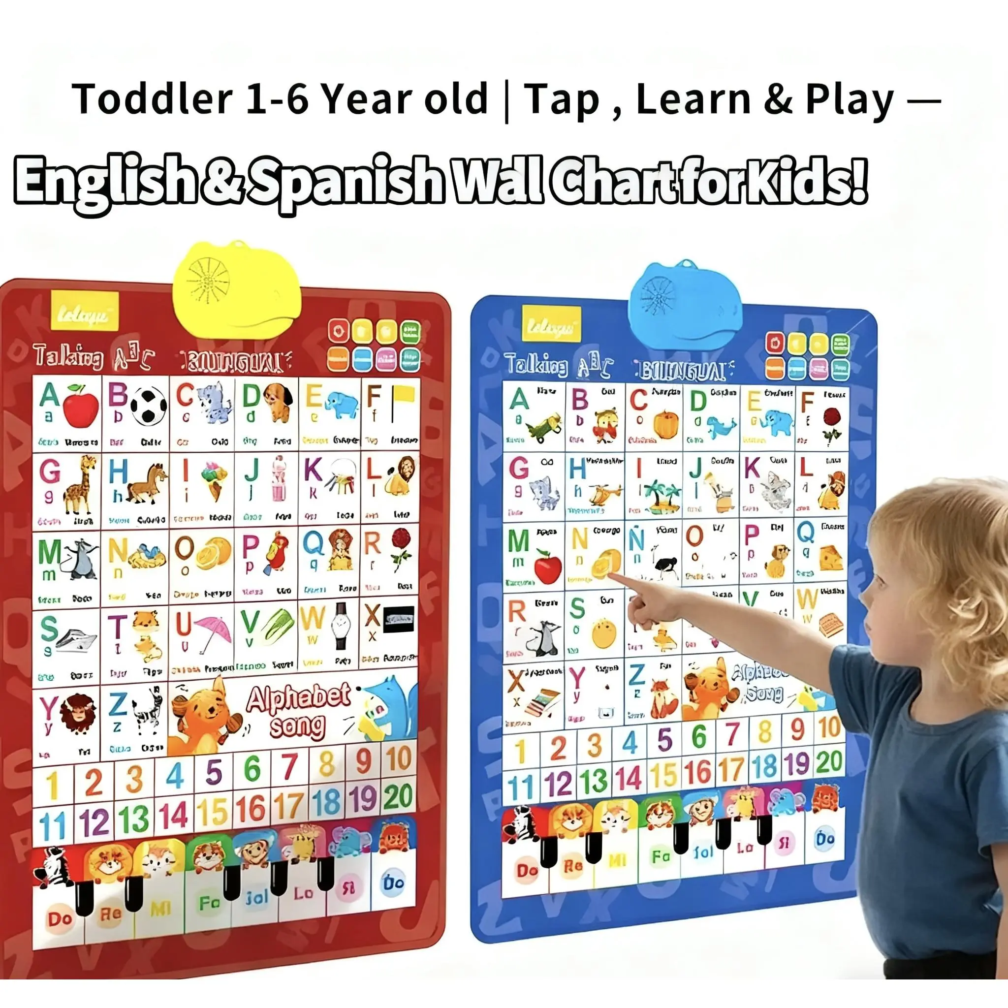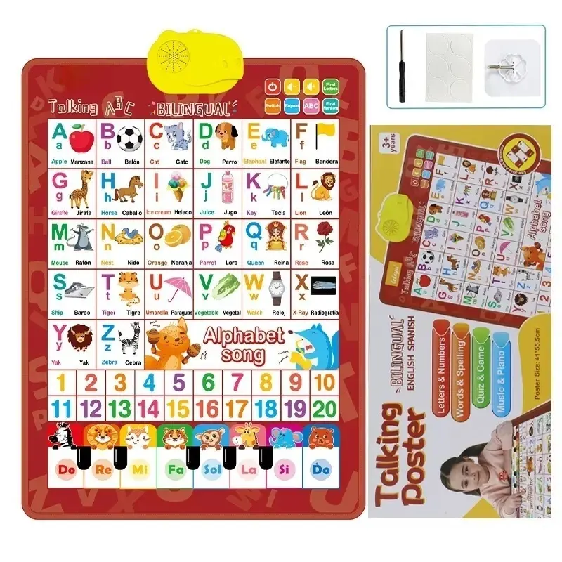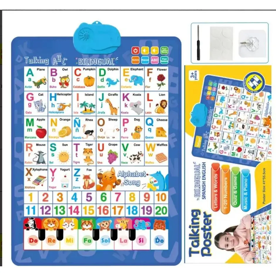 Kids' English-Spanish Alphabet Poster with Interactive Talking Alphabet & Number Chart for Early Education Fun Bilingual Learning ABC & Basic Vocabulary Toy,Perfect Gift for Kids