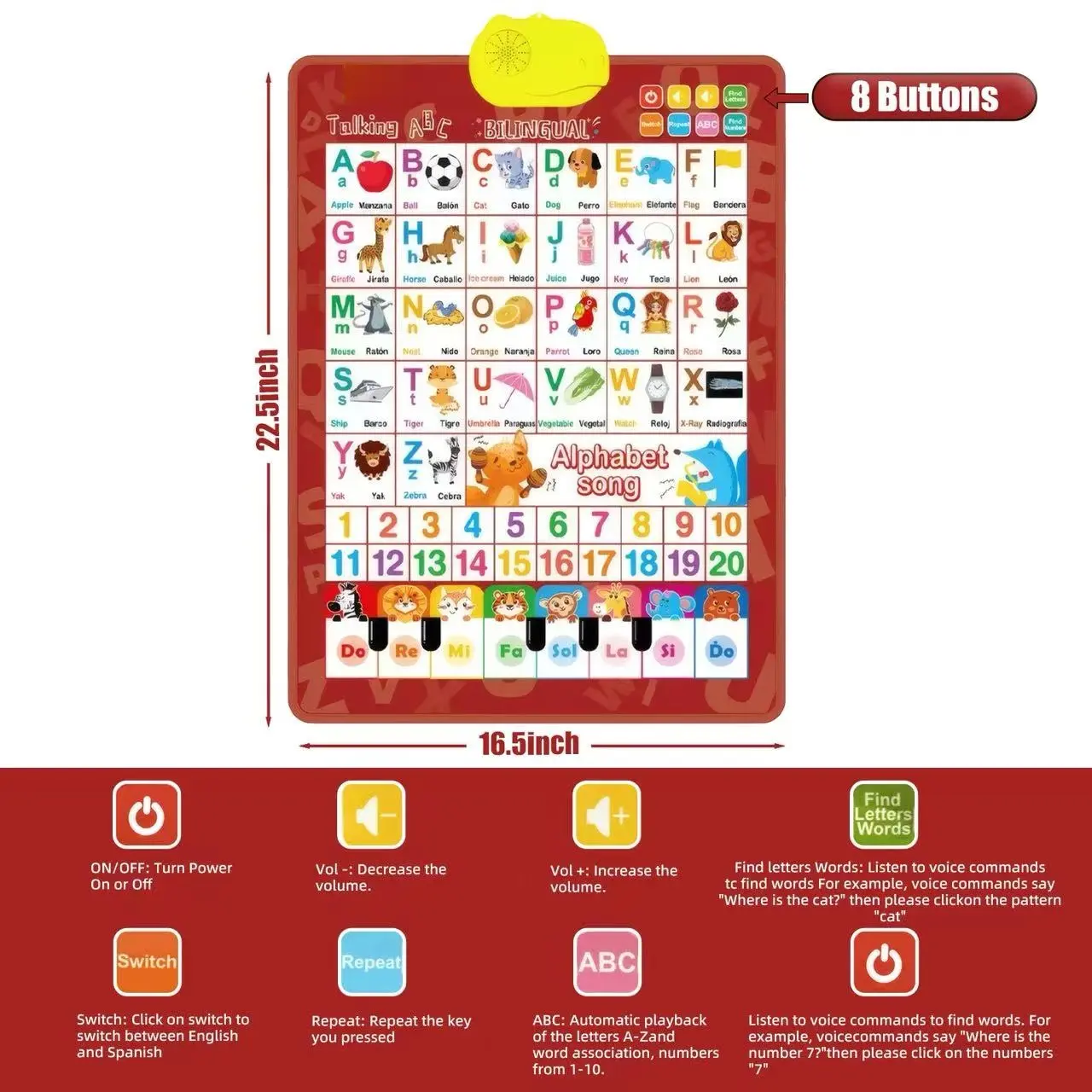 ✅Spanish Alphabet| 9 Songs| 3 AAA Batteries