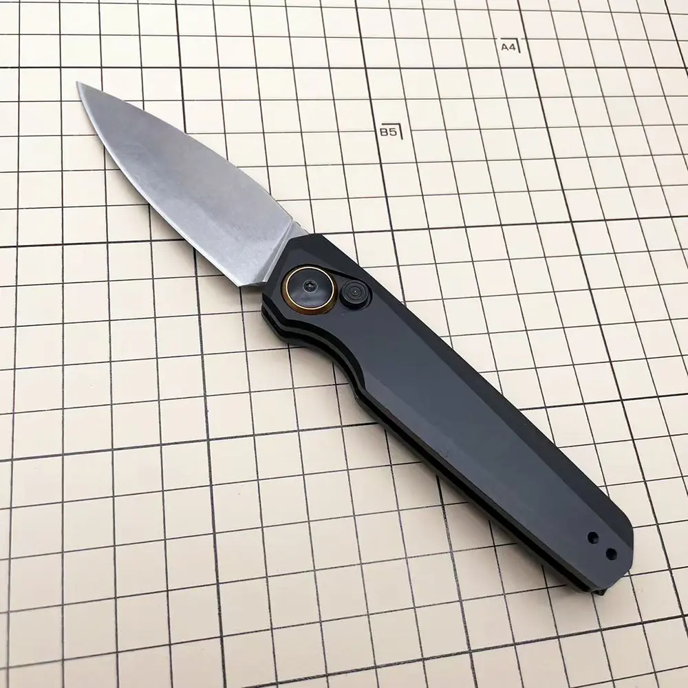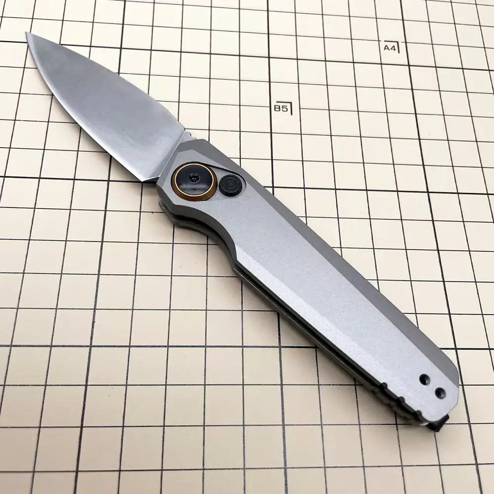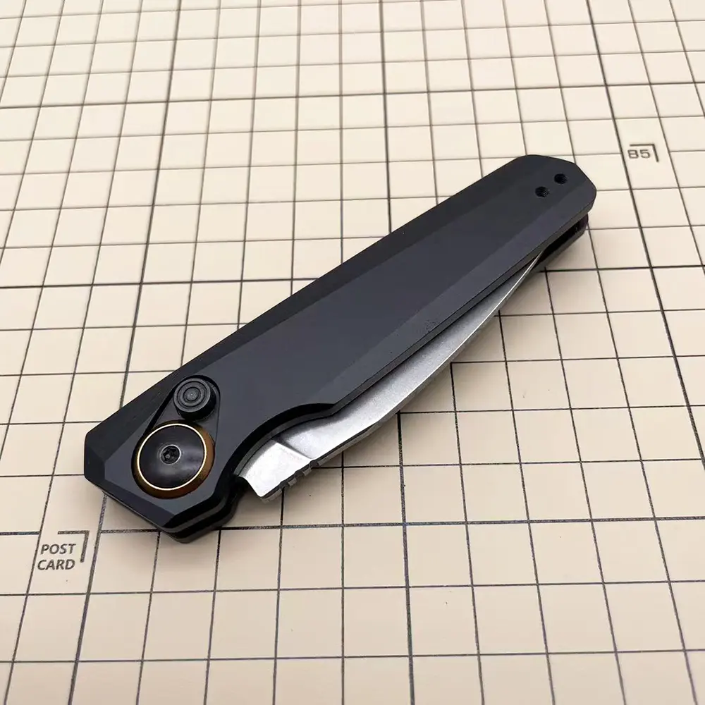 The knife uses a manual button lock mechanism for safe and stable locking. This is a manual folding knife, NOT an automatic or spring-assisted knife. The blade must be opened manually with thumb pressure and has a strong bias toward closure to ensure safe use.