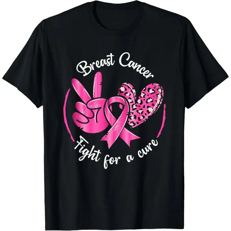 Peace Love Cure Breast Cancer Awareness T-Shirt With Ribbon Design