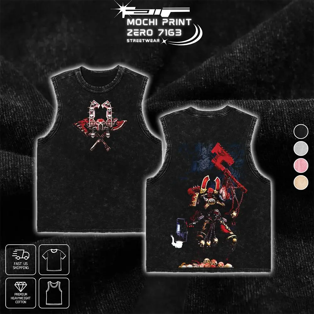 Warhammer 40K KHORNE Graphic T-shirt Crewneck Sweatshirt Hoodie Tank Top Streetwear 100% Premium Cotton Apparel Oversized Game Fan Gift Heavyweight Aesthetic Washed Print Unisex Top