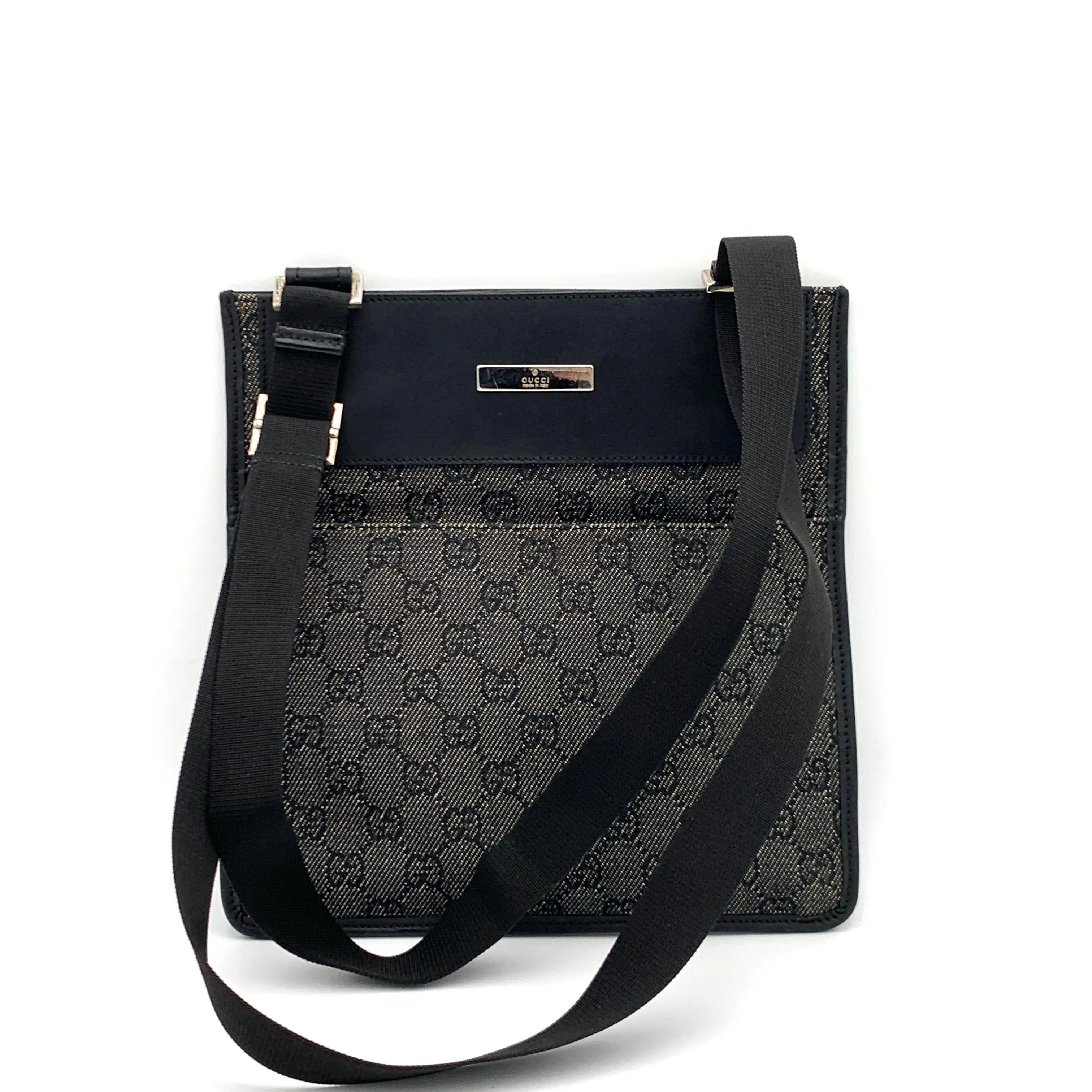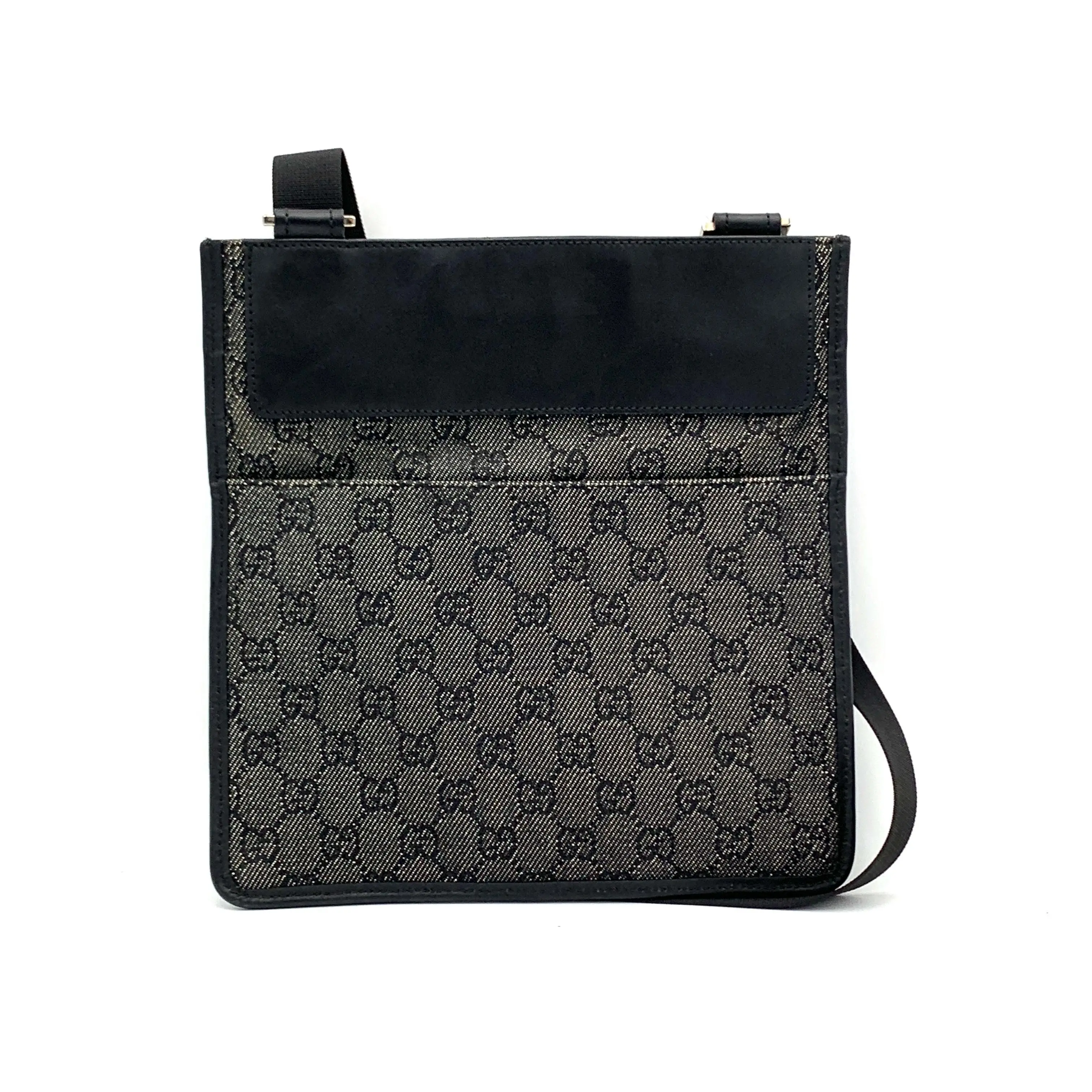 This pre-owned Gucci Zip Top Messenger Bag Denim Canvas and Leather Black in Black is a great addition to your collection!