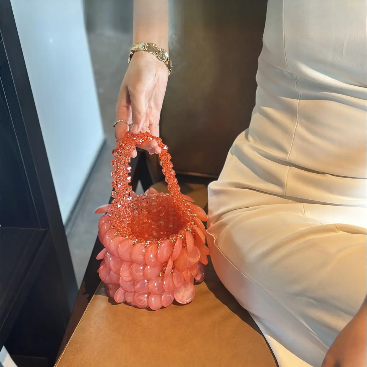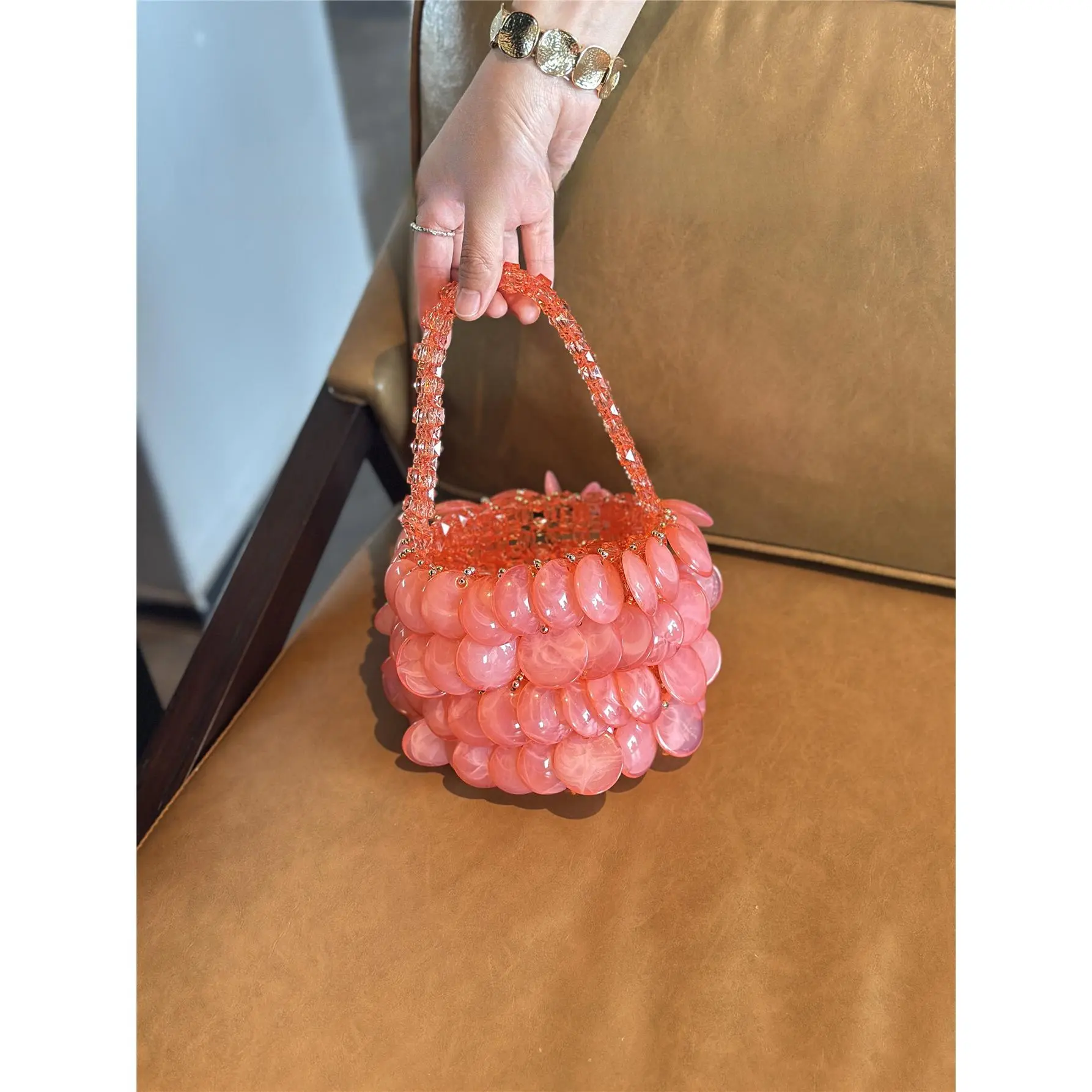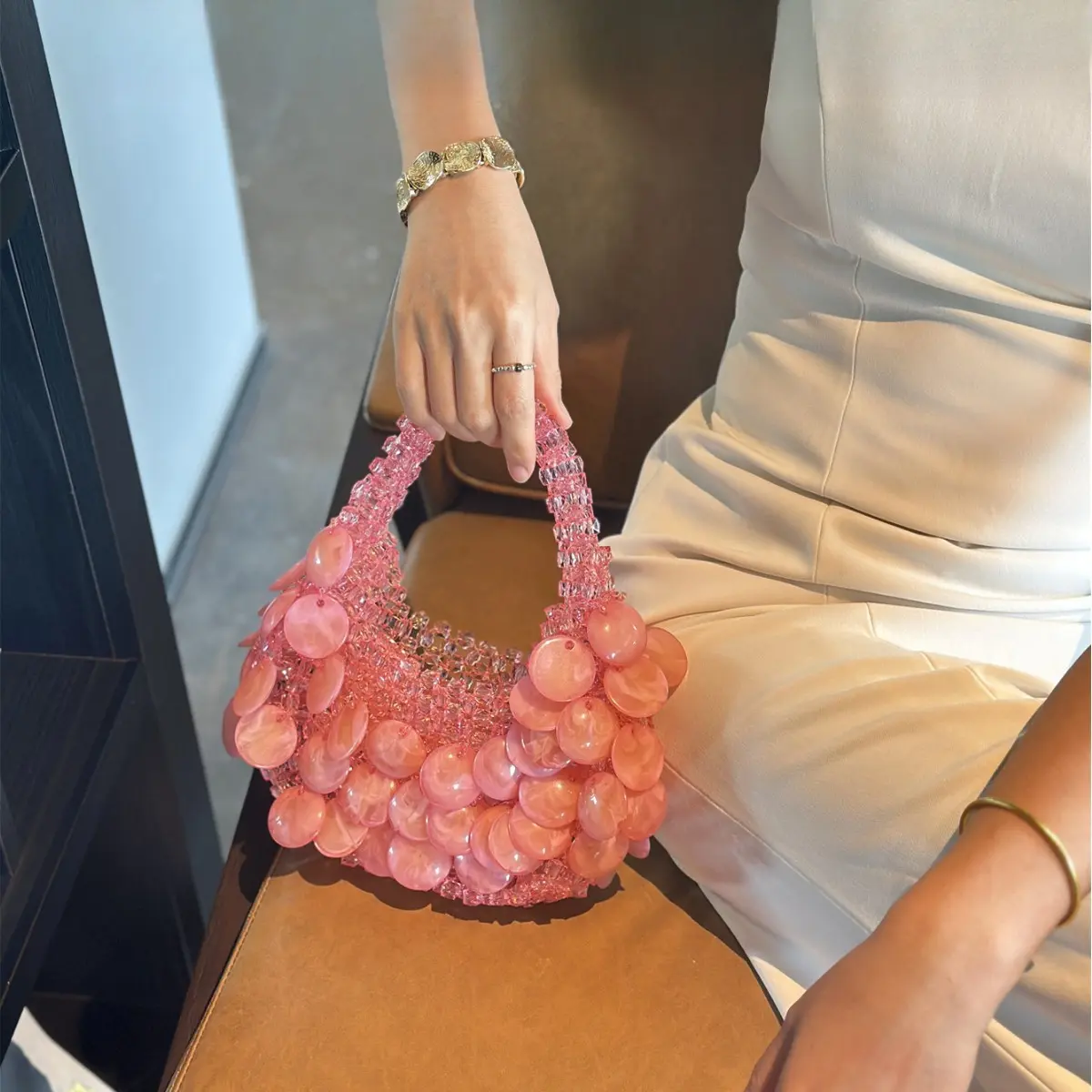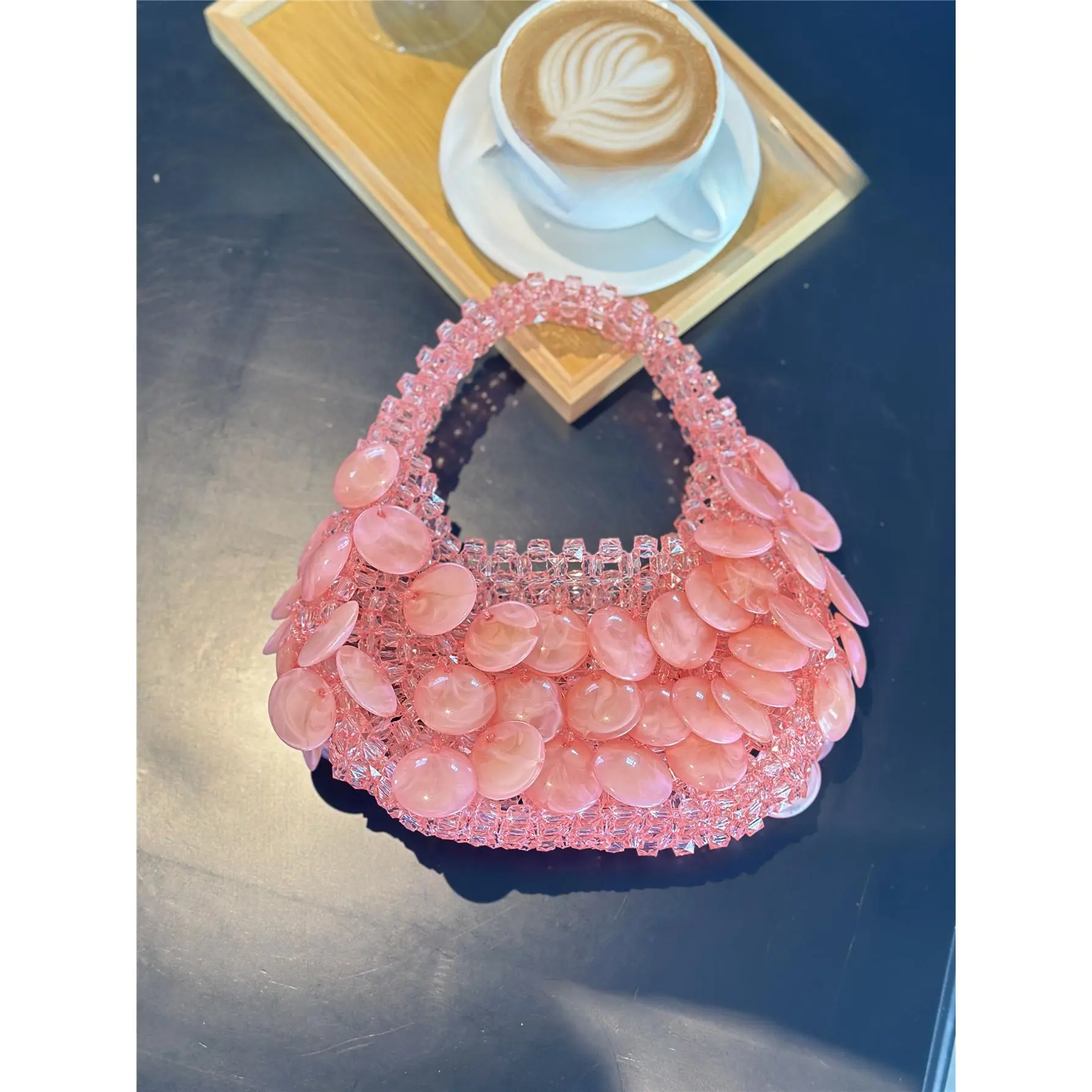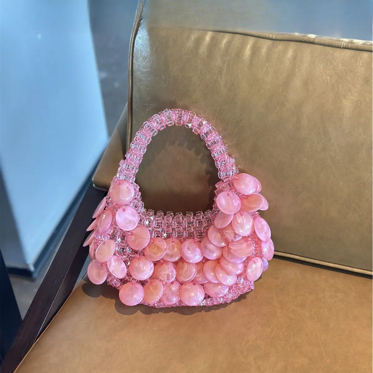 Vintage Barbie Pink Handmade Beaded Pearl Natural Large Shell Bucket Bag Crescent Bag Handbag for Women 2026