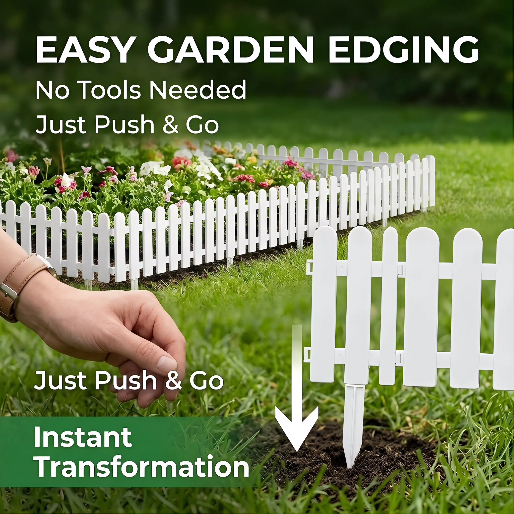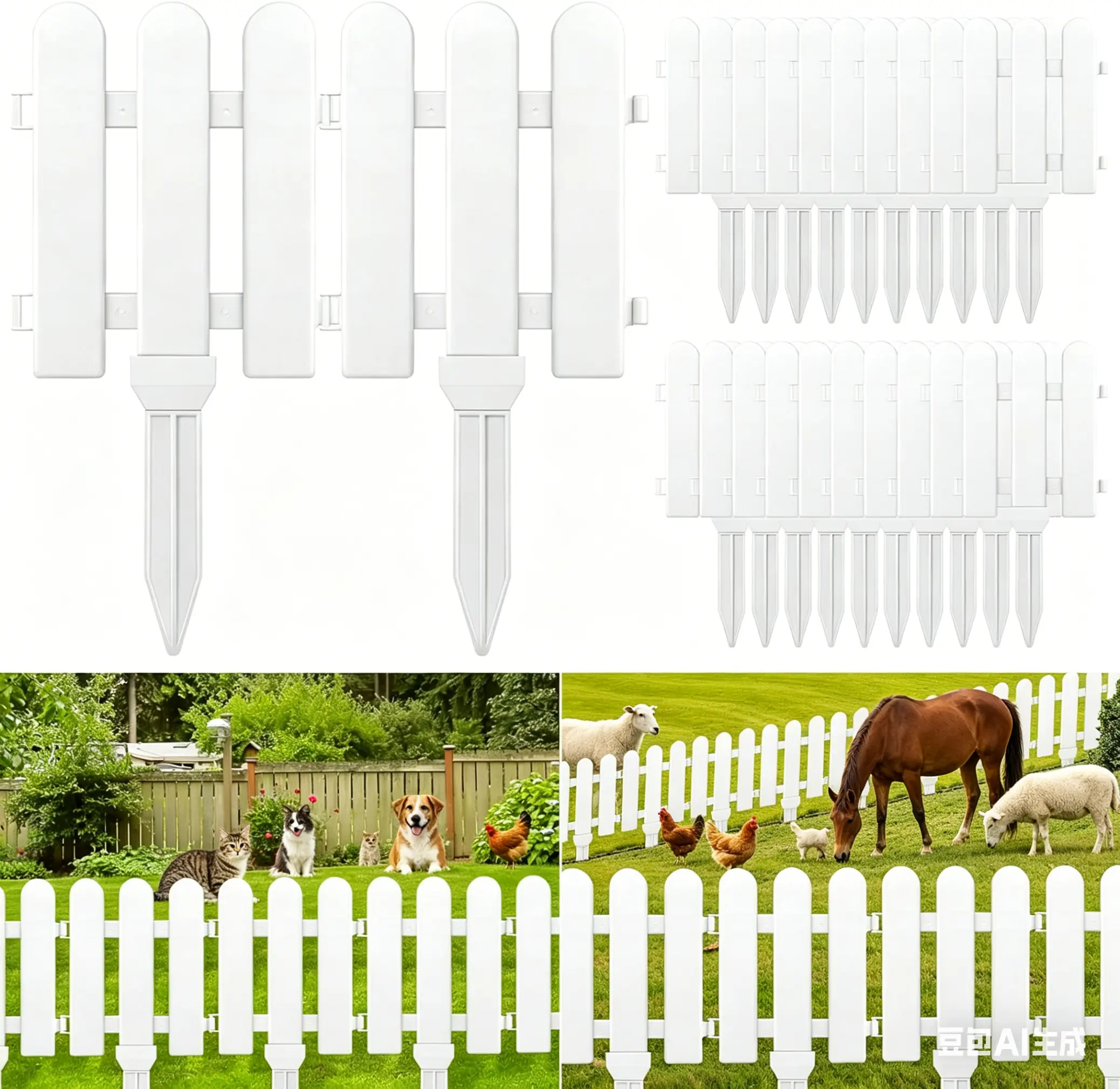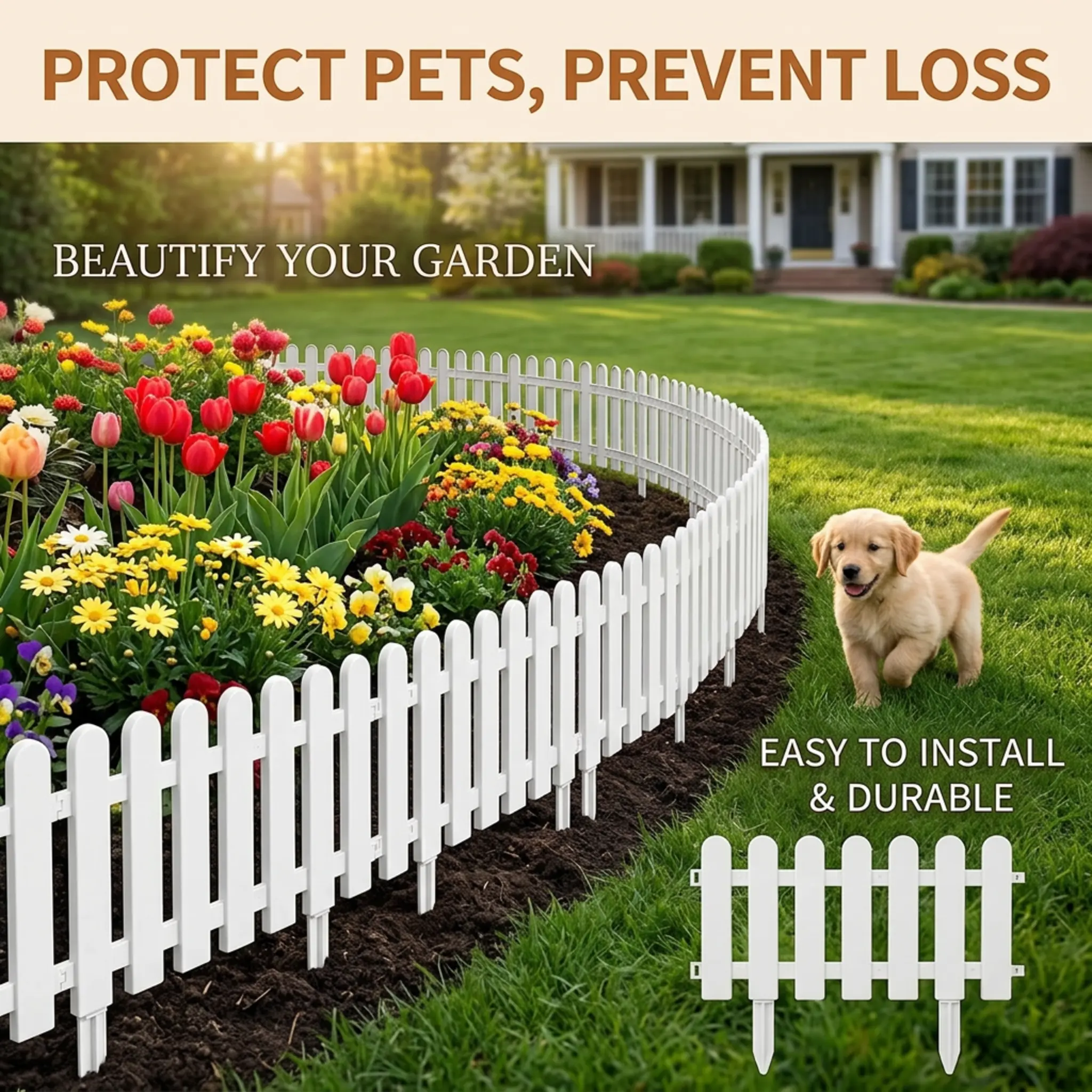 8-Pack Outdoor Pet Plastic Fence – Push-In Ground Stakes for Easy Installation – Keep Dogs & Cats Safe in Yard – Prevent Escape & Wandering – Protect Lawns, Flower Beds & Gardens – DIY Adjustable Barrier for Backyard, Patio & Garden