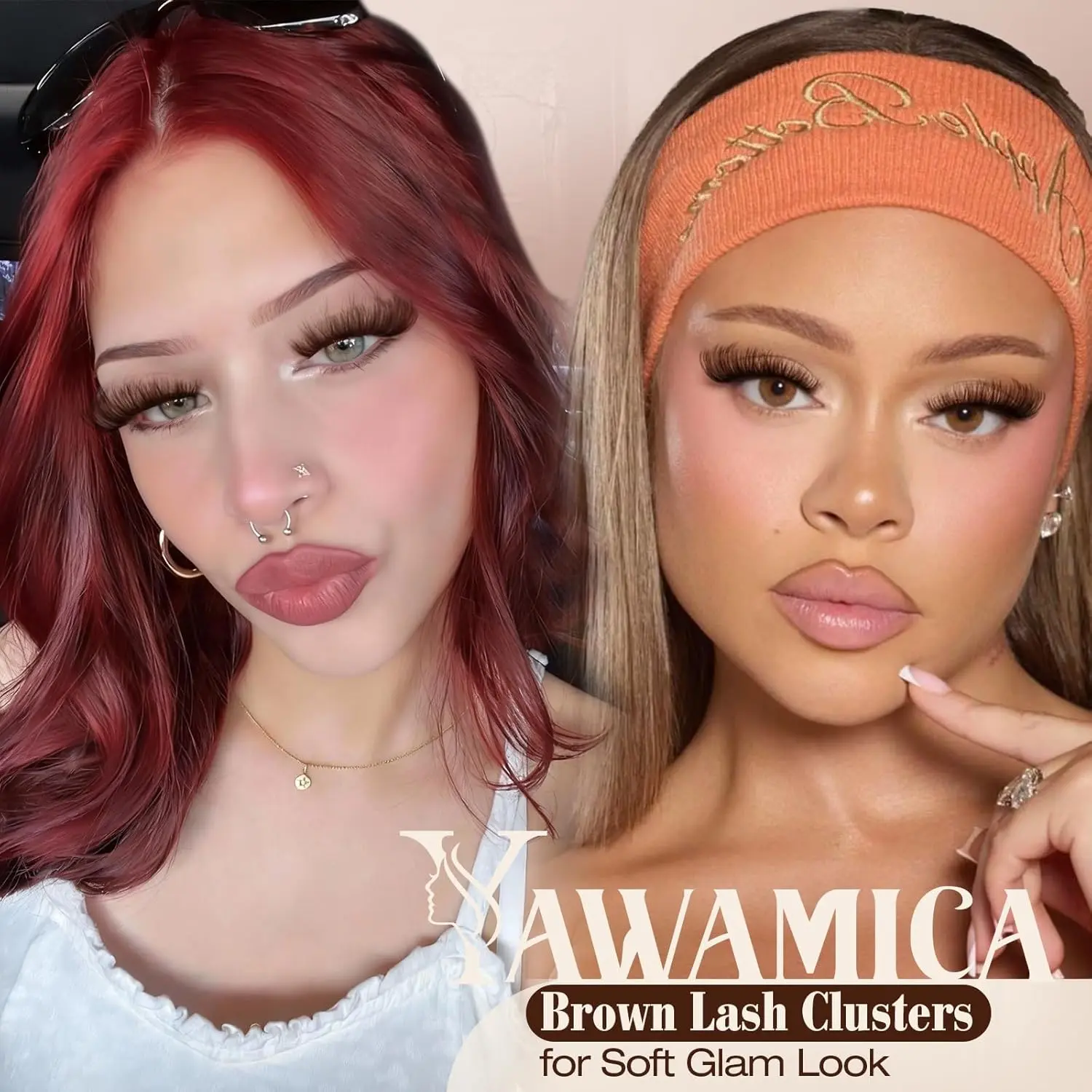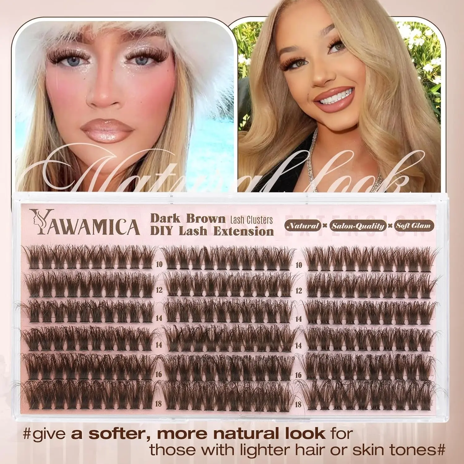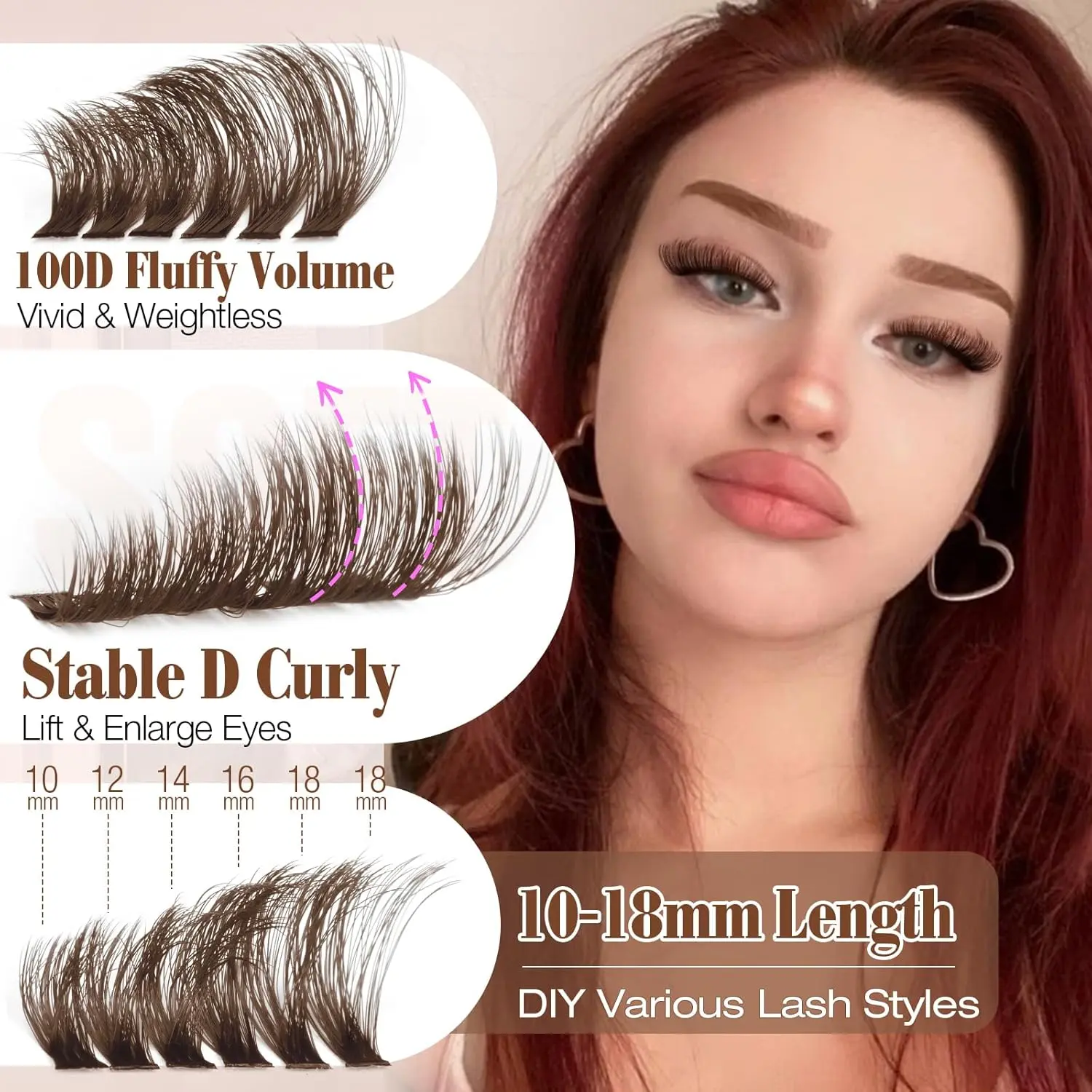 ·Volume & Weightless: Achieve a stunning 100D volume effect with our premium dark brown lash clusters. Made with premium fibers for full, feather-light wear and enjoying brown cluster eyelash extensions without heaviness.