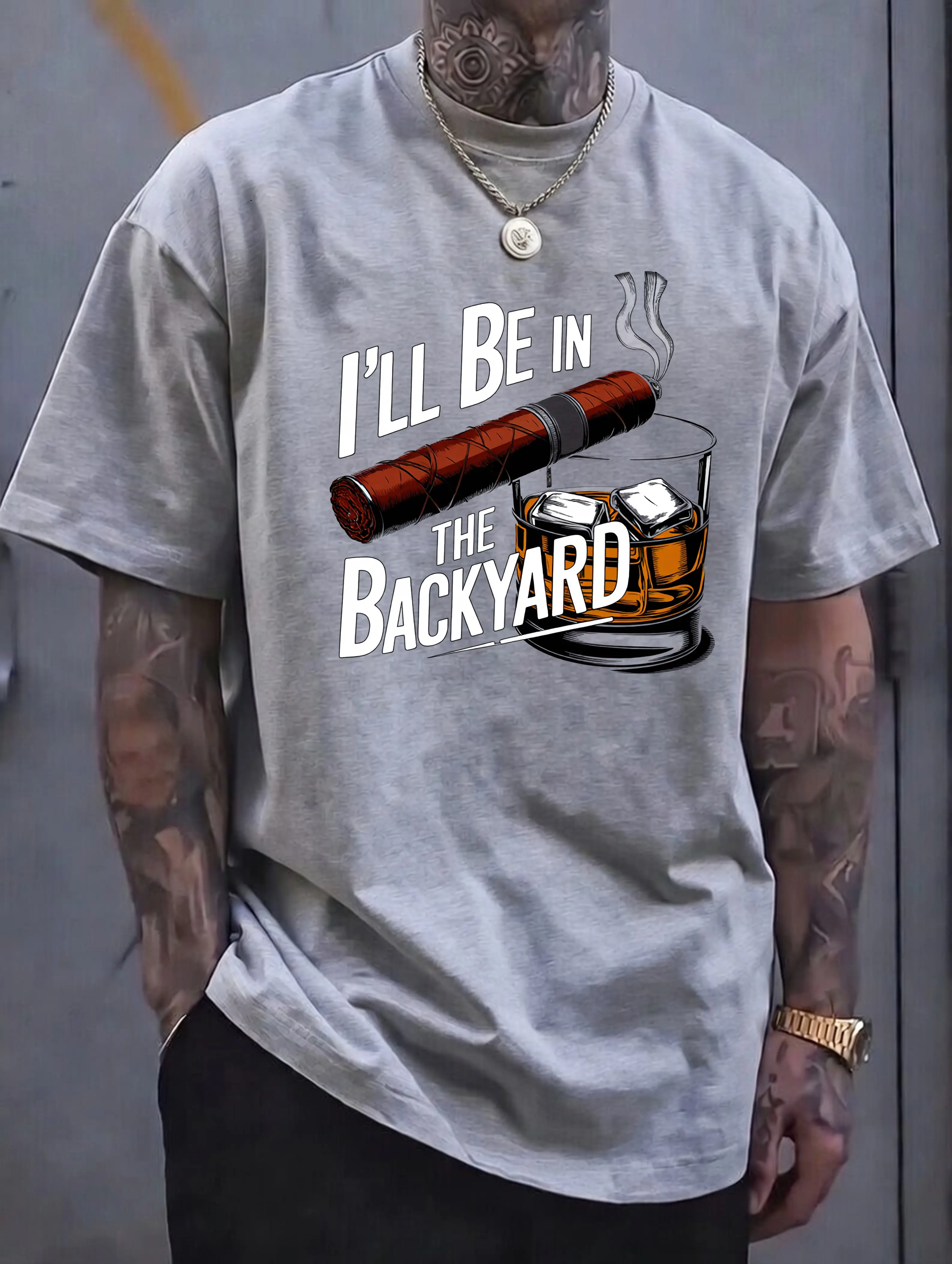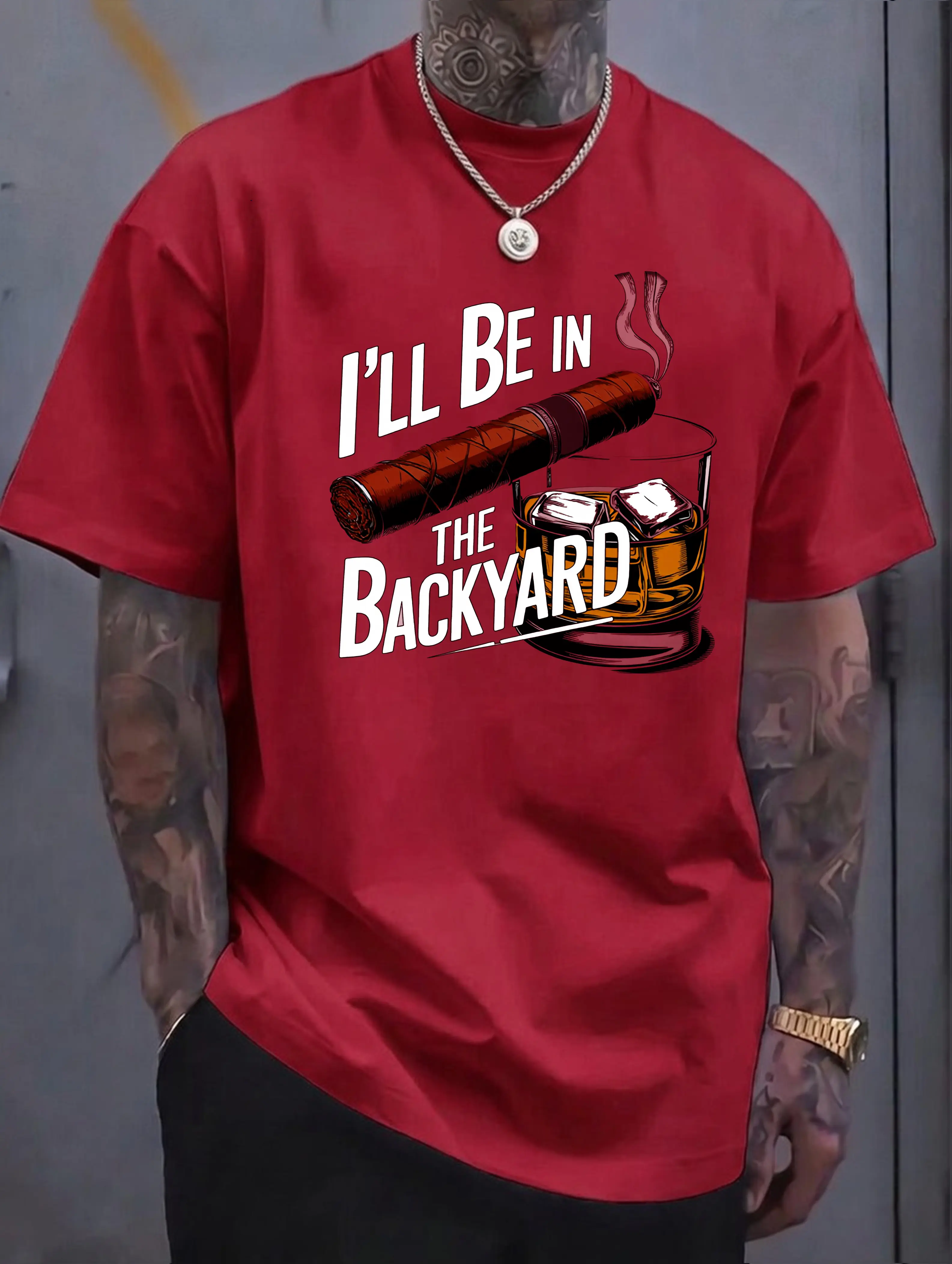 Unique Design: Featuring a bold graphic of a cigar and whiskey glass, this T-shirt captures the laid-back, relaxed vibes of spending time in the backyard, making it the perfect statement piece for casual outings.